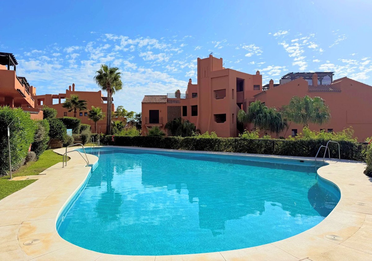 - GROUND-FLOOR APARTMENT WITH LARGE TERRACE AND TOURIST LICENSE NEAR THE SEA. Privileged location in a charming Mediterranean-style complex, just 200 m from the beach and only a 5-minute drive from Estepona and the vibrant Duquesa Marina, where you’ll find all kinds of services, restaurants, and leisure options. This beautiful ground-floor apartment stands out for its brightness, thanks to its southeast orientation, and for its magnificent newly renovated terrace, featuring glass curtains, an outdoor kitchen area, and elegant parquet flooring that adds warmth and style. The property, built with high-quality materials, offers two spacious bedrooms, carefully redesigned lighting that enhances every corner, and a practical anti-limescale system for greater comfort. From the terrace, you can enjoy pleasant views of the lush gardens, the communal pool, and a partial sea view. Located in a quiet and well-maintained community with a swimming pool and large green areas, this apartment also includes a parking space and a storage room. With a **tourist license obtained this year**, it represents an excellent opportunity both as an investment with high rental potential and as a cozy home by the sea. **A must-see — you’ll love it!**