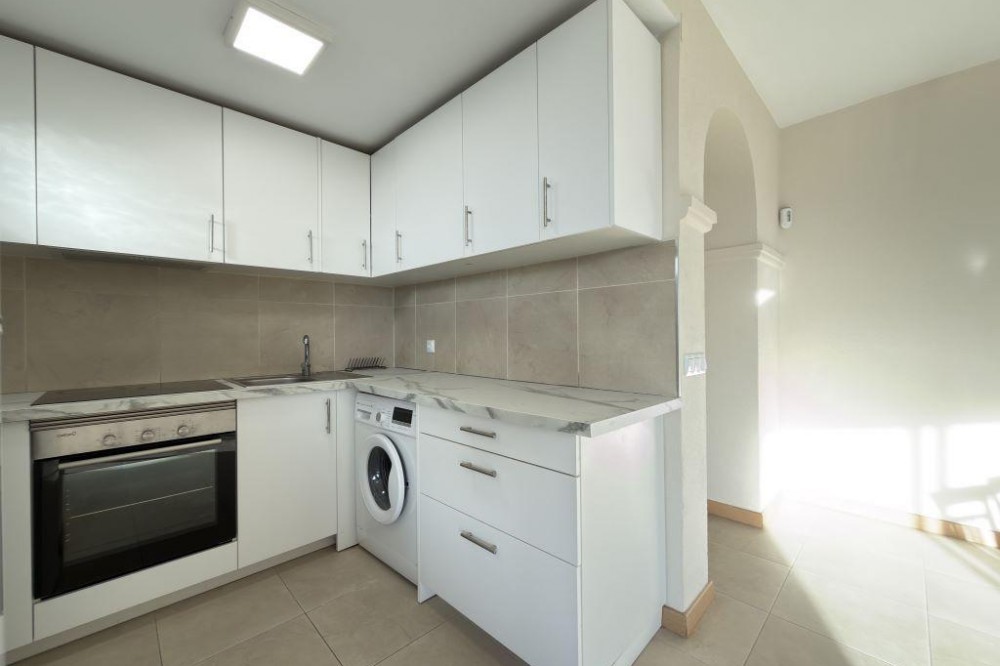 - This bright and stylish two-bedroom, two-bathroom apartment, fully renovated, is located in the prestigious Atalaya Golf area—a peaceful residential setting surrounded by nature and close to all amenities. The interior has been redesigned with a modern, contemporary aesthetic, maximizing natural light and creating spacious, welcoming rooms. The generous living-dining area connects seamlessly to a large terrace with pleasant open views, ideal for relaxing, sunbathing, or enjoying outdoor meals. Both bedrooms are spacious and functional, while the bathrooms feature high-quality finishes and a sleek, modern style. The community offers a large swimming pool and beautifully maintained gardens, ensuring a serene atmosphere throughout the year. A key advantage is that the community fee includes water and hot/cold air conditioning, providing significant savings since both heating and cooling are covered. The property also comes with an assigned parking space on the street, offering convenience for residents and guests alike. With an excellent location close to the beach, golf courses, restaurants, and everyday services, this apartment is ideal as a permanent residence or a holiday home on the Costa del Sol. A move-in-ready home that perfectly blends Mediterranean living with a touch of modern sophistication.