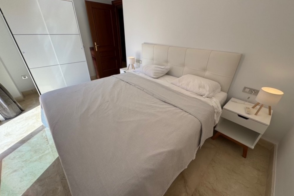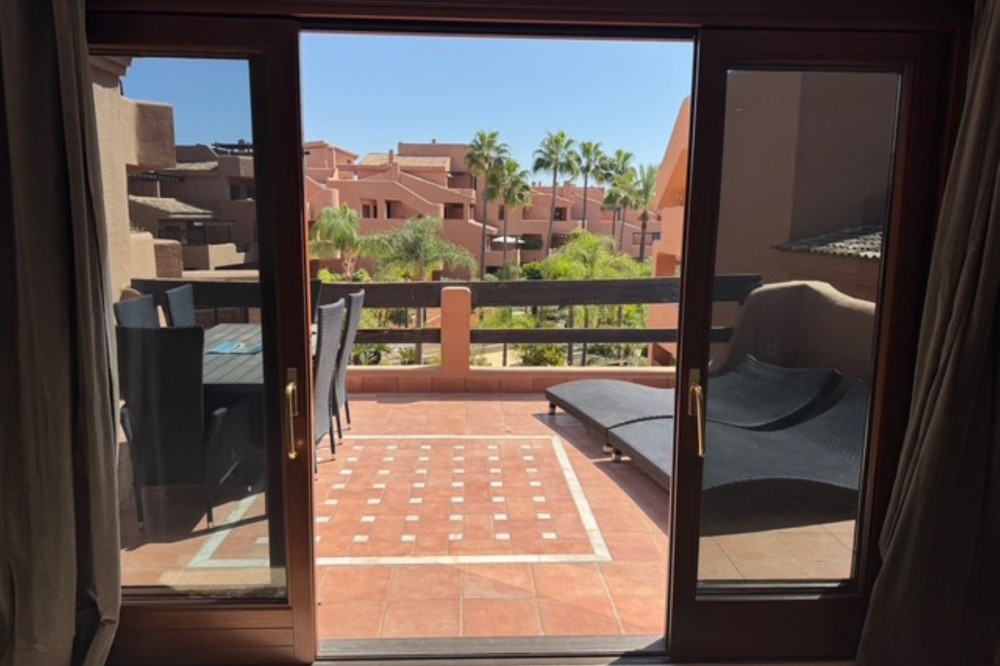 - This elegant 2 bedroom, 2 bathroom apartment is situated in the highly desirable frontline beach community of Mar Azul, located on the prestigious New Golden Mile. The property provides direct access to the sand and sea. It is within walking distance of Estepona’s lively town centre, offering a wealth of bars, restaurants, shops, and all essential amenities. Its prime location ensures excellent transport links and proximity to schools, golf courses, and Estepona Marina, making it ideal for both permanent residence and holiday retreats. The apartment boasts a generous built area of 90m² complemented by a spacious 20m² private terrace, enjoying a bright south-east orientation that allows for ample natural light. The terrace, with its partial sea and serene garden views, presents the perfect setting for al fresco dining or relaxation in the Mediterranean climate. Inside, the property features a contemporary open-plan living and dining area, a fully fitted and equipped kitchen. The principal bedroom benefits from an en-suite bathroom, while both bedrooms are fitted with ample wardrobes. Marble flooring runs throughout the apartment, and the inclusion of air conditioning and partial underfloor heating ensures year-round comfort. Residents of Mar Azul enjoy access to a range of premium communal facilities, including a beautifully maintained garden, an inviting swimming pool, and secure gated surroundings with 24-hour security service. A lift provides easy access to all floors. The apartment also includes a private garage space and a separate storage room, offering additional convenience and peace of mind. The property’s close proximity to amenities, the beach, and local attractions, combined with its luxurious finishes and practical features, make it an outstanding opportunity for those seeking a sophisticated coastal lifestyle on the Costa del Sol.