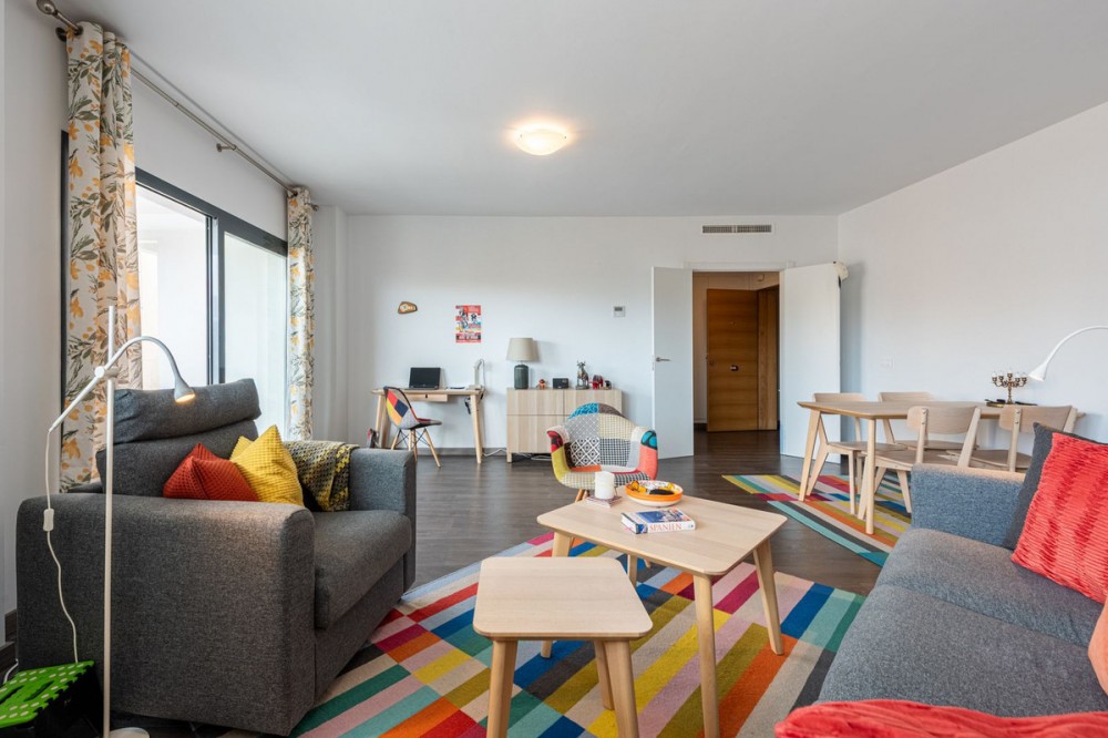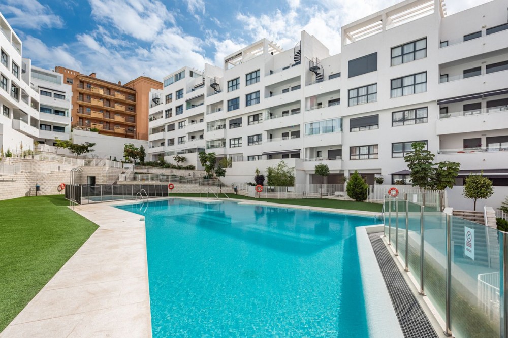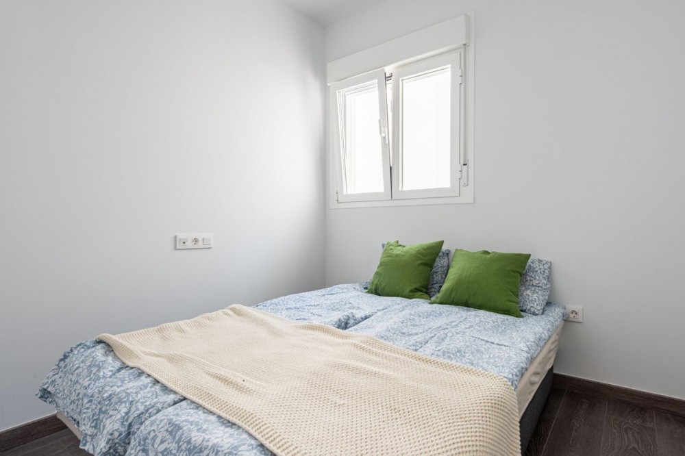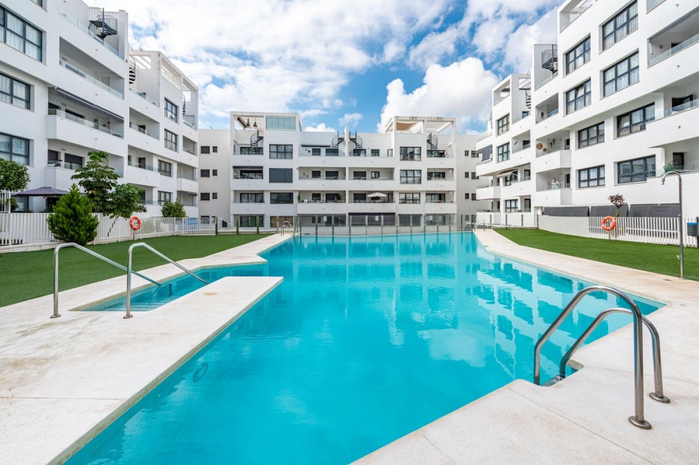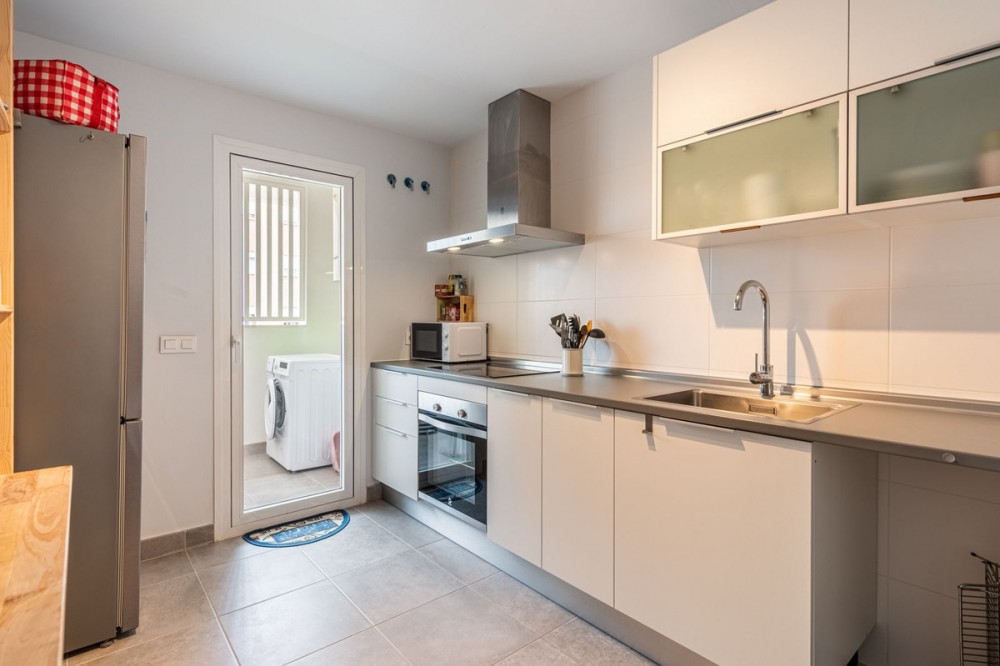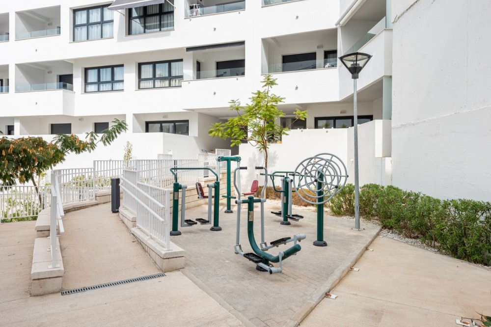 - Modern and Central Apartment with Large Terraces in Estepona Gardens Located in the heart of Estepona town, this modern apartment offers comfortable and convenient living within walking distance to all amenities, the charming old town, the promenade, and the beach. The property is situated in the popular complex Estepona Gardens, which features a communal swimming pool, lush green areas, a playground, and an outdoor gym – ideal for both relaxation and an active lifestyle. The apartment consists of three spacious bedrooms, two bathrooms, and two wonderful large terraces that provide generous space for socializing and enjoying the sunny climate. Bright and modern throughout, there is also the option to open up the kitchen to create an open-plan layout if desired. A storage room and a garage space are included, making this an exceptionally comfortable and attractive home in the center of Estepona. An ideal property for those seeking to combine city living, convenience, and the best of the Mediterranean lifestyle.