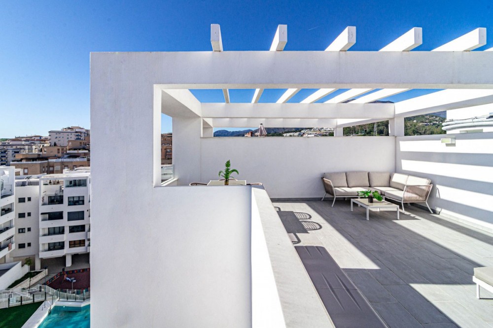 • Welcome to this penthouse in Estepona Gardens, a modern residential complex completed in 2023 and located right in Estepona center. From here, you can easily walk to the Old Town, shops, restaurants, and the beach, everything you need is just a short stroll away. Despite the convenience of a private garage space and storage room, you’ll find that daily life here can be comfortably car-free. Supermarkets and cafés are only a couple of minutes away, the charming Old Town is about an 8-minute walk, the beach around 12 minutes, and Estepona’s marina just a bit further. The area is lively all year round, with many full-time residents ensuring that shops and restaurants stay open even outside the summer months. The penthouse enjoys pleasant views over the surroundings, giving it a bright and open feel. Estepona itself is known for its authentic Andalusian charm, with flower-lined pedestrian streets, reduced traffic in the center, and an inviting promenade along the beach that encourages walking and outdoor living. It’s a family-friendly town with several playgrounds close to the sea and an Old Town that has been beautifully restored. Estepona Gardens was developed by one of Spain’s largest builders and offers excellent communal facilities, including a swimming pool and a children’s play area. The apartment is ideal both as a permanent home or as a lock-up-and-leave holiday property, thanks to its central location, easy maintenance, and an active, valid tourist license. Inside, you’ll find a separate kitchen and an adjoining utility room with a washing machine and water heater. The bedrooms feature built-in wardrobes, and the interiors are finished with light, high-quality materials. Perfect for the one seeking an modern easy maintained apartment in the centre.