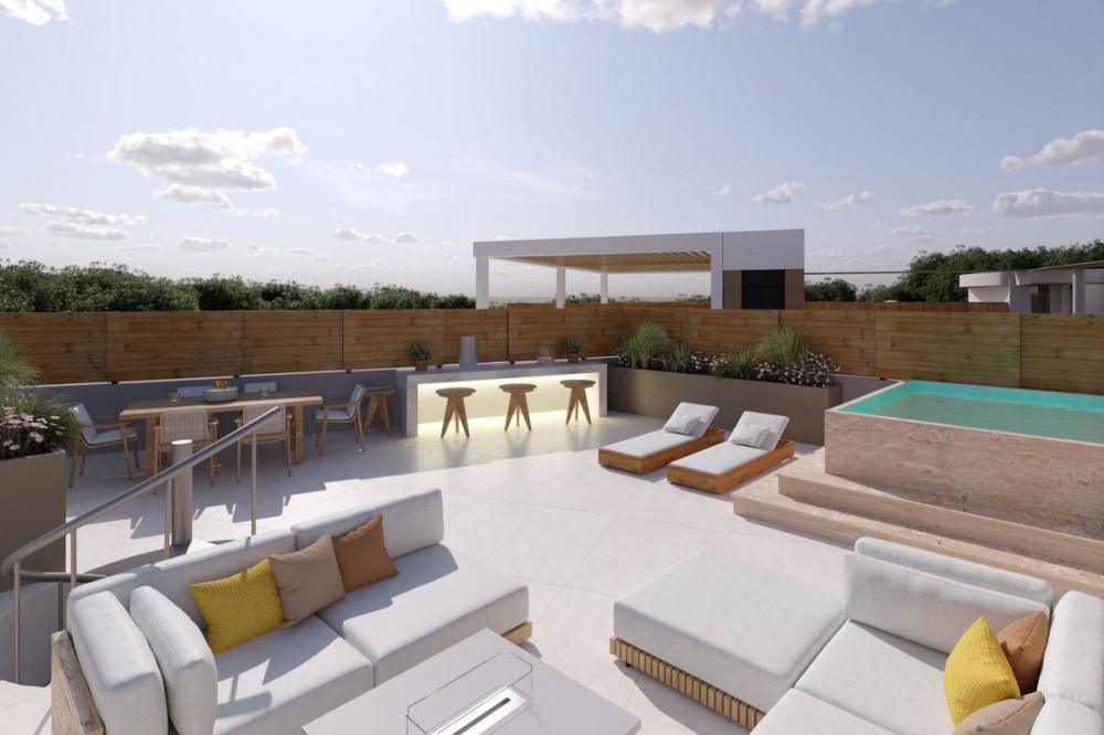 • (This is a Resale Unit of a new development) BRAND NEW CORNER-PENTHOUSE WITH PRIVATE SOLARIUM & PLUNGE POOL IN CENTRAL ESTEPONA Experience elevated Mediterranean living in this brand-new, key-ready corner penthouse, boasting the best position in the development and located right in the heart of Estepona Center — just a short stroll from the charming old town, the beach, and the lively seaside promenade. Vivienda 25 impresses with its exclusive rooftop solarium featuring a private plunge pool, offering the ideal space to relax, entertain, and take in panoramic views of Estepona’s skyline. With a total of 61 m² of outdoor space — comprising a 33 m² main terrace and a 28 m² rooftop solarium — this residence epitomizes the Costa del Sol’s indoor–outdoor lifestyle. Designed for effortless modern comfort, it features a bright open-plan living area, fully fitted kitchen and bathrooms, and premium finishes throughout. Additional features include: - Corner layout ensuring maximum privacy and natural light - Underground parking space - Private storage room - Access to outstanding community amenities: gym, coworking space, and swimming pool Enjoy the best of both worlds — a peaceful home within a vibrant urban setting, just 5 minutes from the beach, 20 minutes from Marbella, and 45 minutes from Málaga Airport. Whether you’re looking for a key-ready residence, a holiday escape, or a ready-to-rent investment, Vivienda 25 offers modern design, prime location, and the luxury of immediate move-in. Your Costa del Sol lifestyle begins the moment you step through the door. Benefits 1. Immediate Move-In: Buyers can occupy or rent the property immediately after purchase. 2. No Hidden Costs: There’s no need to spend extra money on finishing works, installations. 3. Time-Saving: Ideal for buyers abroad or investors who want a hassle-free purchase. 4. Better for Rentals: Especially relevant in markets like Marbella — investors can start generating rental income instantly. Note: Retail price excludes taxes, notary, and registration fees.
