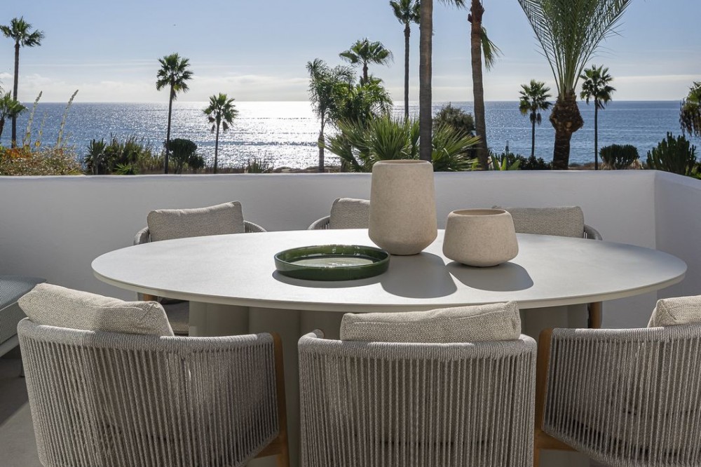 • Perfectly positioned along Estepona’s New Golden Mile, this exclusive beachfront community offers a serene atmosphere surrounded by lush gardens and sparkling pools. With its blend of Andalusian elegance and modern comfort, Costalita provides direct beach access, easy reach to top golf courses and restaurants, and the relaxed sophistication that defines life on the Costa del Sol. A brand new 2-bedroom apartment just steps from the golden sands of the Mediterranean, set within a secure, landscaped resort-style complex. The bright, open-plan living and dining area flows seamlessly onto a generous south-west facing terrace with spectacular sea views, while a cozy fireplace adds warmth and charm. The modern kitchen, equipped with high-quality German appliances and a Thermomix, combines style and functionality. Both bedrooms are spacious and elegantly finished, with contemporary bathrooms featuring premium fixtures. A separate laundry area and thoughtful design details make this a comfortable, sophisticated coastal home filled with natural light and warm tones.