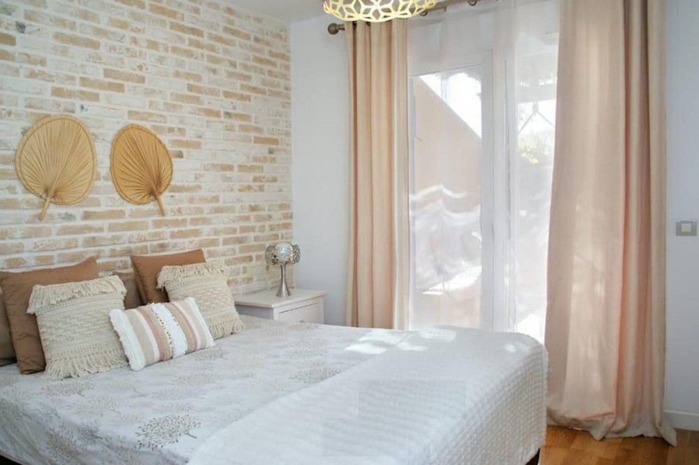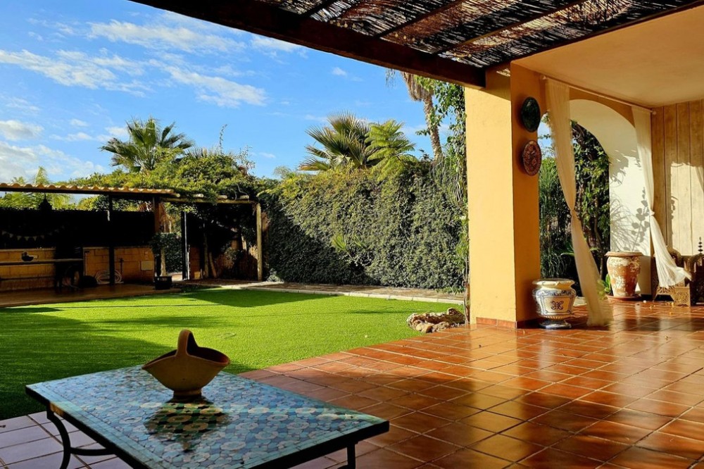 - This beautiful two-bedroom ground-floor apartment boasts a spacious outdoor area. It features a large covered terrace and a spacious private garden with a barbecue, pergola, and direct access to the swimming pool, paddle tennis court, and children's playground. The porch has a pergola, perfect for relaxing or gathering outdoors. The entire garden is paved and covered with high-quality artificial turf, making maintenance easy and ensuring it looks its best year-round. A barbecue area has also been created, equipped with custom-made furniture, a sink, water and electricity connections, and a second pergola that provides shade and comfort, creating an ideal space for meals and outdoor gatherings. Thanks to these improvements, the garden is a practical, comfortable, and modern space, perfect for enjoying time with friends and family. The apartment is located in the prestigious Selwo area, on Estepona's New Golden Mile, near Resina Golf, the new Padel Club, and the American School. Its south-facing orientation guarantees natural light throughout the day. This apartment features two bathrooms, one of which is en-suite with a dressing room and direct access to the terrace and garden; an extended kitchen with a laundry area and access to another terrace; and a bright living-dining room with access to the outdoor areas. It includes hot/cold air conditioning throughout, an underground parking space with direct elevator access to the apartment door, and additional outdoor parking for guests. The community, comprised of only 32 apartments, offers a large swimming pool, a children's playground, and a paddle tennis court. Its excellent location, less than 10 minutes from San Pedro Alcántara and Estepona, and very close to Marbella and Puerto Banús, makes this property a unique opportunity. Thanks to its wonderful outdoor spaces and the area's pleasant climate, it feels like home. A viewing is highly recommended.