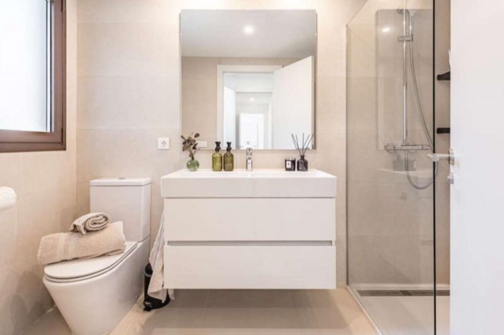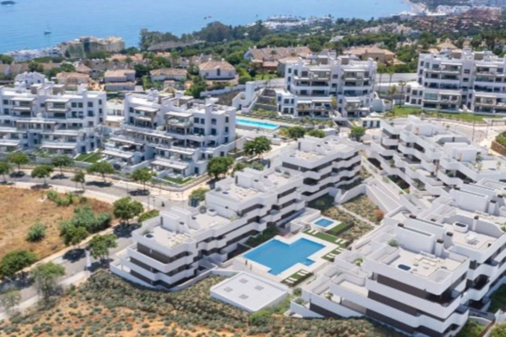 - Welcome to this bright and modern three-bedroom apartment located in the highly sought-after area of Las Mesas, Estepona, renowned for its proximity to the sea, the marina, green areas and all daily amenities. Where contemporary architecture and high-quality design come together to create an elegant and comfortable living environment. The apartment offers 112 m² of built space (94 m² usable) with a well-planned open-plan layout that seamlessly integrates the living room and the modern fully fitted kitchen, creating a spacious and sociable atmosphere filled with natural light thanks to large sliding glass doors. These open directly onto the property’s standout feature: an exceptional terrace of approximately 115 m², designed as a true extension of the living space and ideal for enjoying the Costa del Sol lifestyle all year round. The terrace enjoys sun throughout the day, features generous lounge and dining areas, is partially covered for shade and comfort, and includes partially glazed panels that provide wind protection and additional privacy, while offering pleasant open views towards the communal pool, surrounding greenery and the Mediterranean Sea in the distance. The apartment comprises three tranquil bedrooms with fitted wardrobes, including a master bedroom with en-suite bathroom and direct access to the terrace, while the remaining two bedrooms are ideal for guests, children or a home office, with two of the bedrooms also benefiting from terrace access. Both bathrooms feature a timeless, minimalist design with walk-in glass showers, large mirrors, high-quality finishes and excellent storage solutions, with the en-suite bathroom adding an extra touch of luxury. Additional features include air conditioning with hot and cold settings, a smart NUKI entrance lock controllable via mobile app, a separate laundry area discreetly located on a smaller front balcony, and orientation to the south and west for optimal natural light. The property includes a private underground parking space and a storage room, both easily accessible by lift, and the building is adapted for people with reduced mobility. South Place is a modern, secure and well-managed residential community offering landscaped gardens, a large communal swimming pool, a children’s pool and a fully equipped gym. Ideally located just minutes from Mercadona, the marina, the beach, parks, walking paths, schools, restaurants and sports facilities, this apartment is perfectly suited as a permanent residence, holiday home or investment opportunity in one of Estepona’s most attractive residential areas.