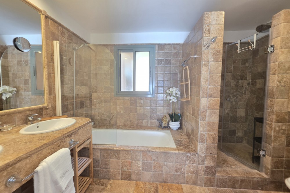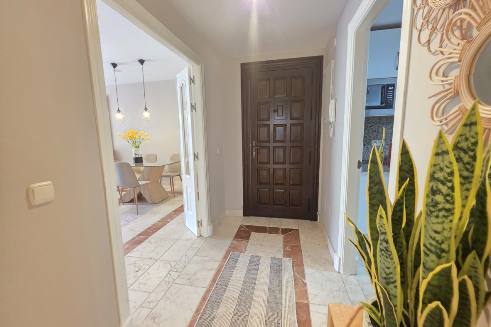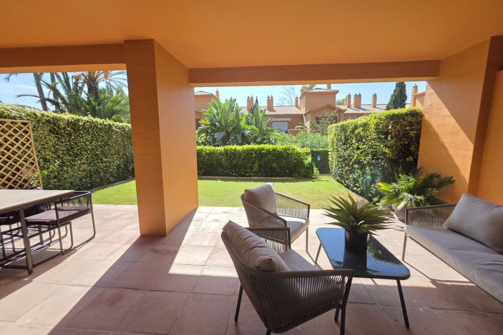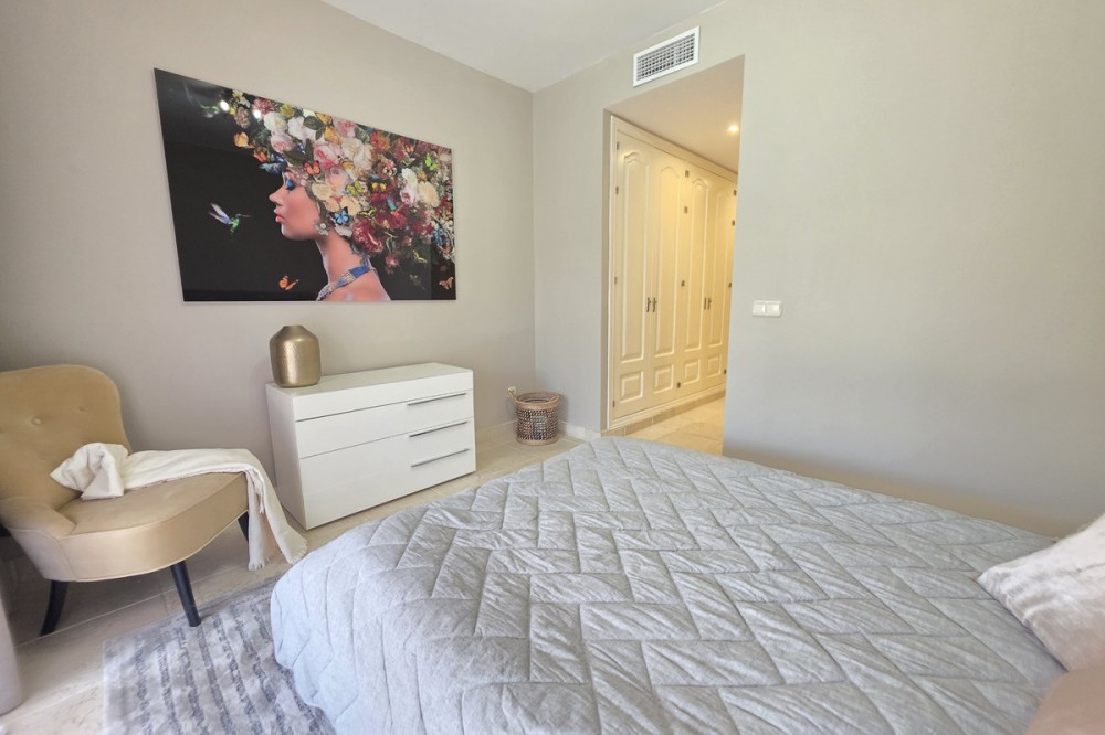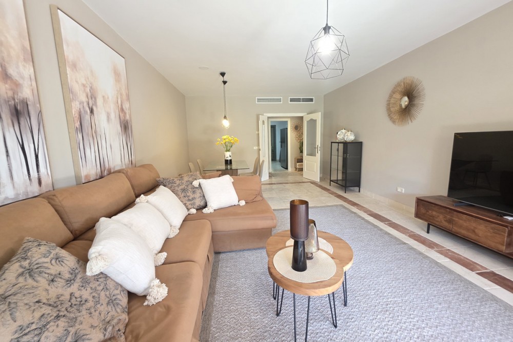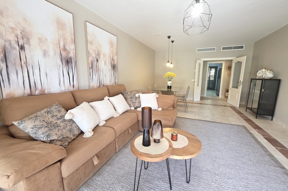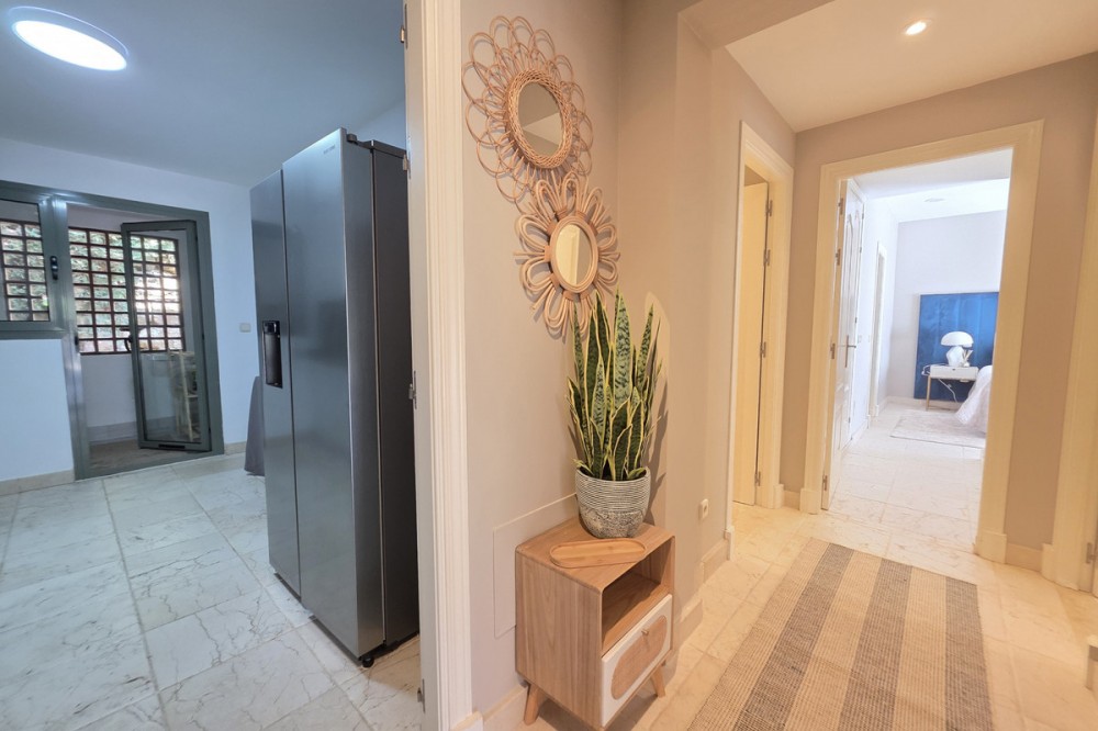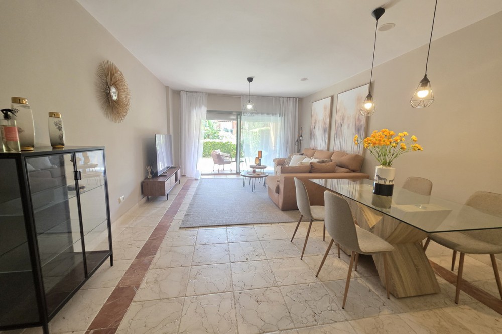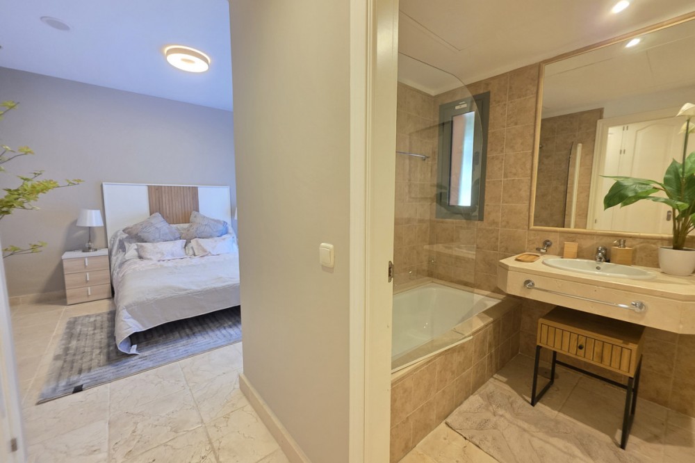- Elegant appartement op de begane grond, gelegen in het prestigieuze Benatalaya-complex. Licht en ruim, met een open woon- en eetkamer die direct toegang biedt tot een groot terras en een privétuin. De woning beschikt over drie slaapkamers, elk met een eigen badkamer, een volledig uitgeruste keuken met wasruimte, evenals twee parkeerplaatsen en een berging. Bewoners genieten van exclusieve voorzieningen zoals 24-uursbeveiliging, tropische tuinen, diverse buitenzwembaden, een verwarmd binnenzwembad, een fitnessruimte, een spa en een sauna. Dankzij de toplocatie op slechts enkele minuten van Puerto Banús, Marbella en Estepona, en omgeven door golfbanen en internationale scholen, is deze woning de perfecte keuze, zowel als permanente woning als investering.