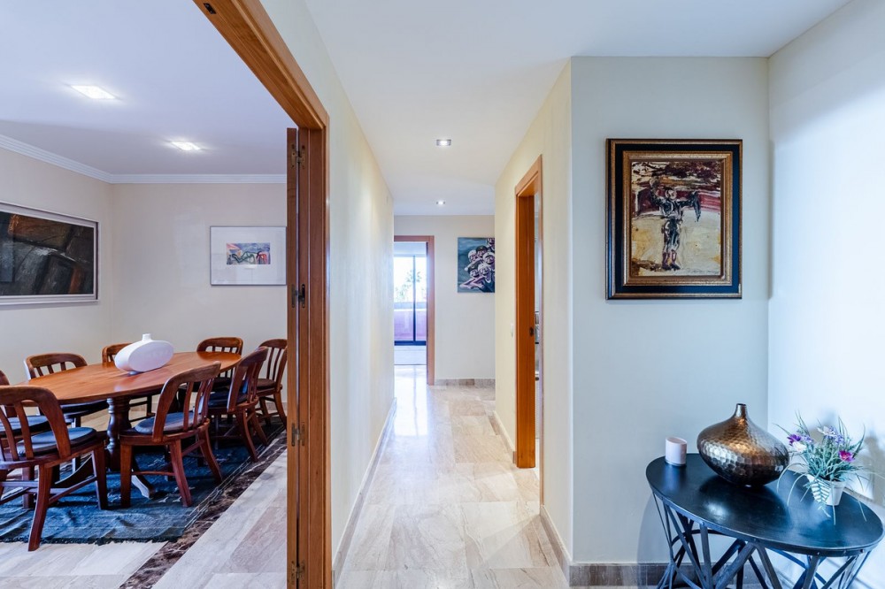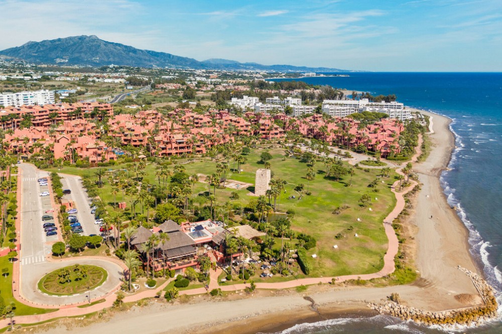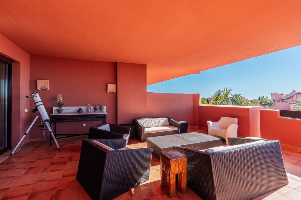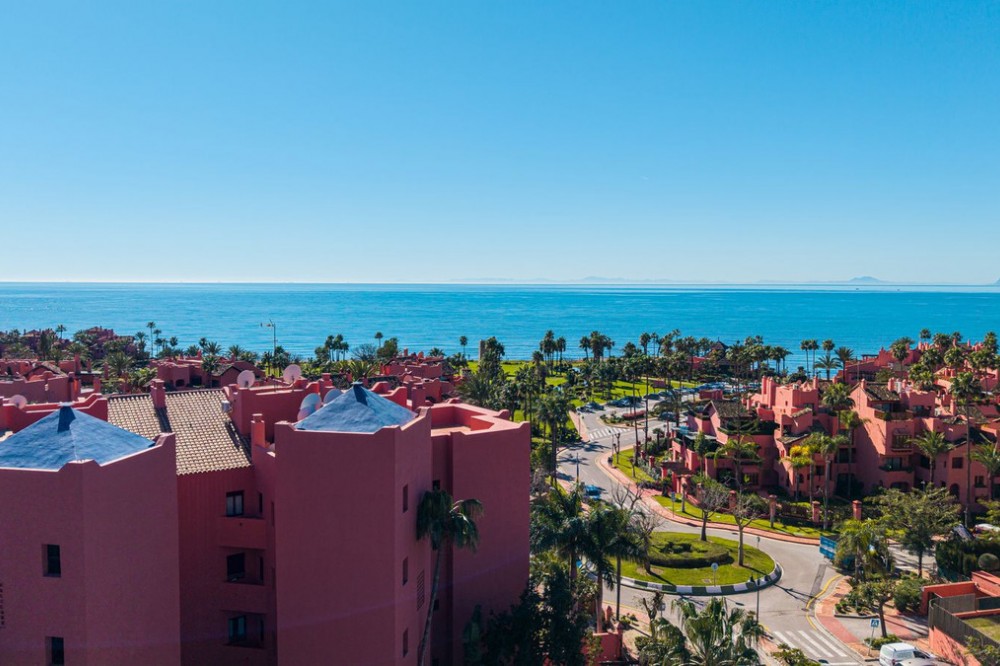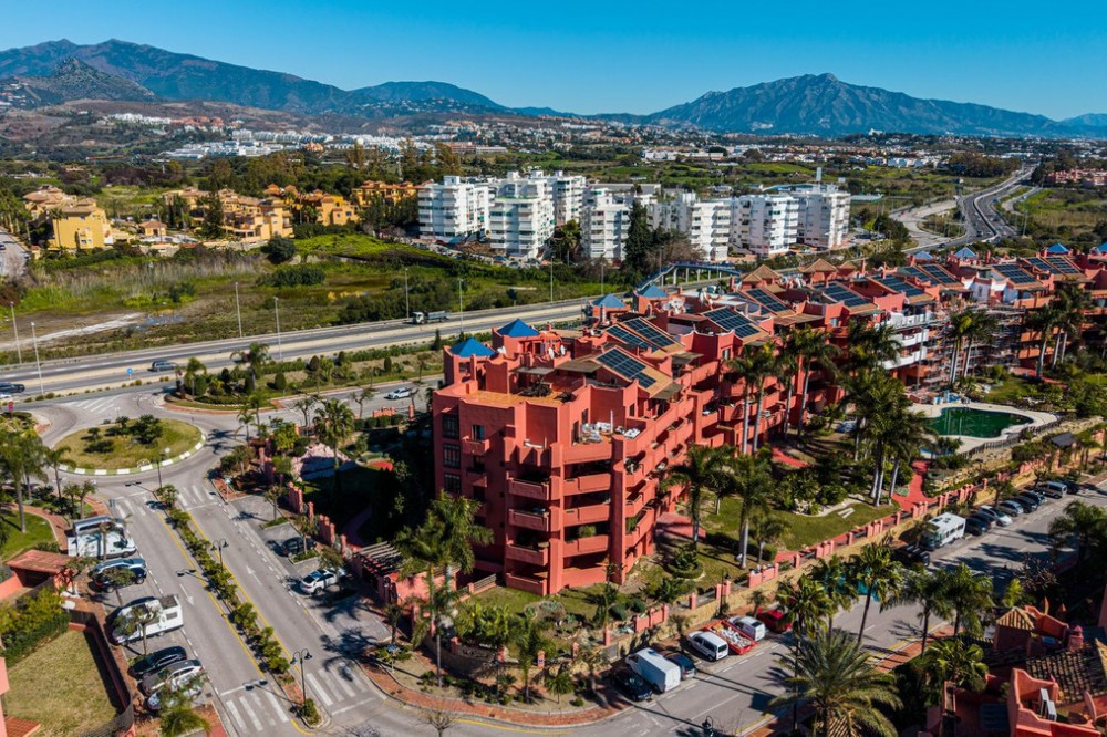 - LAS NÁYADES · NEW GOLDEN MILE · ESTEPONA Elegant Corner Apartment with Panoramic Sea Views Located within the prestigious Las Náyades community on the New Golden Mile in Estepona, this elegant corner apartment offers generous proportions, privacy, and beautiful open views across the Mediterranean towards Gibraltar and the African coastline. Situated within a secure beachside development, just a short walk from the sea and the beachfront promenade, the property enjoys excellent natural light throughout the day thanks to its desirable orientation, along with stunning sunsets over the water. The apartment offers approximately 140 m² of interior space, complemented by a spacious terrace of around 70 m², designed as a true extension of the living area. This outdoor space is ideal for al fresco dining, relaxing evenings, or enjoying the Costa del Sol’s year-round mild climate. Its corner position enhances both brightness and privacy. The interior layout comprises a generous living and dining area with direct access to the terrace, a fully fitted kitchen with a separate laundry area, and three well-proportioned bedrooms. The property features two bathrooms in total, including one en-suite in the master bedroom. One private underground parking space is included. Las Náyades is a gated development with 24-hour security and concierge service, surrounded by beautifully maintained tropical gardens. Residents benefit from resort-style facilities including an outdoor swimming pool, indoor heated pool, fully equipped gym, spa, and sauna. A full restoration of the building, including the installation of solar panels, is currently underway and fully subsidised by the Junta de Andalucía, with no special assessments for owners. Once completed, the upgrades are expected to positively enhance the overall value of the property. A refined and comfortable residence, ideal for year-round living or as a secure investment within one of the most established beachside communities on the New Golden Mile.