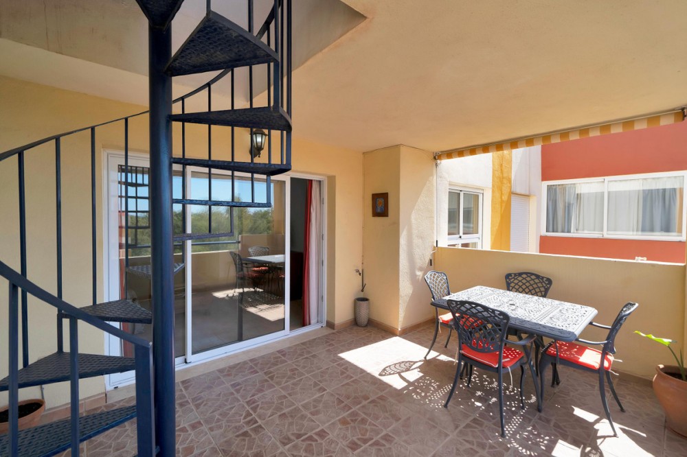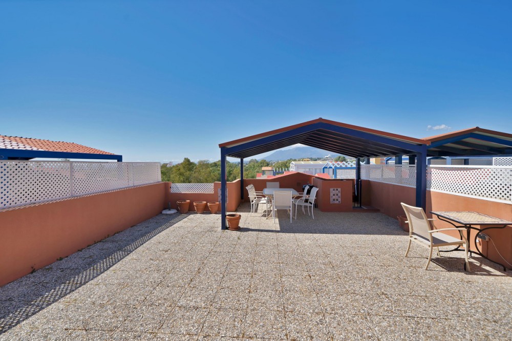 • Penthouse Living with Sea Views & Solarium | Atalaya Green Mar, Estepona Imagine waking up in a bright penthouse, enjoying open views, afternoon sun, and the relaxed rhythm of life on the Costa del Sol. This 2-bedroom penthouse in the gated community of Atalaya Green Mar, Estepona offers exactly that a comfortable Mediterranean lifestyle in a location where everything is within easy reach. Set within a well-established, secure, and beautifully maintained gated community, the property enjoys a prime position with walking distance to shops, restaurants, and daily services, excellent access to main roads, and the beach just a short drive away. Inside, the apartment offers a spacious and well-balanced layout, designed for comfortable living. The bright living-dining room opens directly onto a west-facing terrace, where you can relax, dine, and enjoy views over the gardens, swimming pool, and the sea, especially beautiful at sunset. From the terrace, a staircase leads to a generous private solarium with panoramic views a perfect space to enjoy the sun all day, host gatherings with friends, or simply unwind. Part of the solarium is already covered, offering shade and versatility throughout the year. The property features two bright bedrooms, including a master bedroom with en-suite bathroom, both with large fitted wardrobes. The two bathrooms have been recently renovated, and the spacious kitchen has also been fully renovated, offering a modern and functional space with lovely mountain and green views. Additional features include central air conditioning (hot & cold) and a covered underground parking space. Atalaya Green Mar community provides a peaceful, private, and friendly environment, with beautifully landscaped gardens, a large communal swimming pool, and a separate children’s pool, making it ideal for families, residents, and holiday use alike. Whether you are looking for a comfortable permanent home, a holiday retreat, or a smart and profitable investment, this penthouse represents an excellent opportunity in one of Estepona’s most convenient residential areas. Contact us today to arrange a viewing and experience this special property for yourself. The price includes agency fees and the corresponding VAT (payable by the seller). It does not include buyer’s costs: Transfer Tax (general rate of 7%; reduced rates of 3.5%, 1.2% or 1% depending on the buyer’s profile), Notary fees, Land Registry fees, and administrative (gestoría) fees. The abbreviated information document is available to you. Expenses: Taxes (ITP or VAT+AJD) + Notarial and registration expenses. NG1.