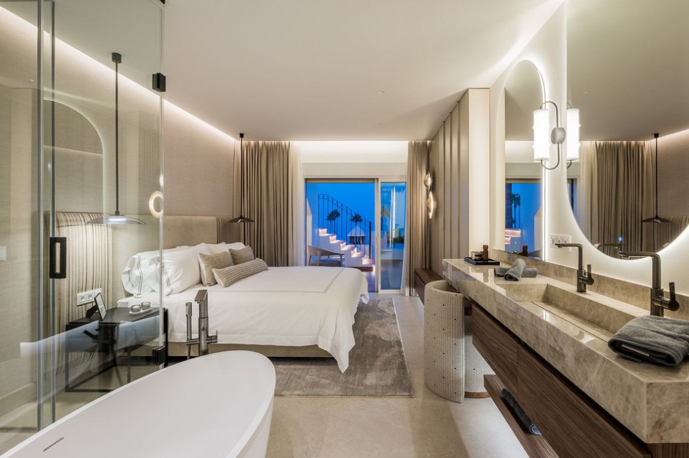 - Bahía del Velerín is een luxe wooncomplex tussen Marbella en Estepona. Het beschikt over een fantastisch zwembad met een snackbar, tropische tuinen en 24/7 beveiliging. Het complex is gelegen aan een van de mooiste stranden in de omgeving. Het appartement wordt geleverd met een ondergrondse parkeerplaats en een extra berging in de kelder. Dit schitterende penthouse is volledig gerenoveerd en beschikt over een open indeling, een verfijnd, eigentijds design en hoogwaardige apparatuur, waardoor het een zeldzaamheid is op de lokale markt. Elke kamer is met zorg ingericht door onze interieurontwerper en beschikt over luxe details zoals op maat gemaakte kledingkasten, inloopdouches, een vrijstaand bad, een Bang & Olufsen geluidssysteem en een strakke, moderne open haard. Het ruime dakterras biedt een adembenemend, onbelemmerd uitzicht op de Middellandse Zee en omvat aparte eet-, wellness- en ontspanningsruimtes. Tot de belangrijkste kenmerken behoren: Berging, B&O geluidssysteem, tweede keuken, wijnkoeler, barbecue, sauna, ingebouwde kookplaat, elektrische open haard, dakterras, jacuzzi, dubbele vaatwasser Thermomix, inloopkast, wasruimte, vaatwasserlift, kas, Japanse toiletten, vloerverwarming. Stel je voor dat je woont te midden van de mooiste architectuur, genietend van je huis en het adembenemende uitzicht op de oceaan dat een gevoel van rust en harmonie brengt.
