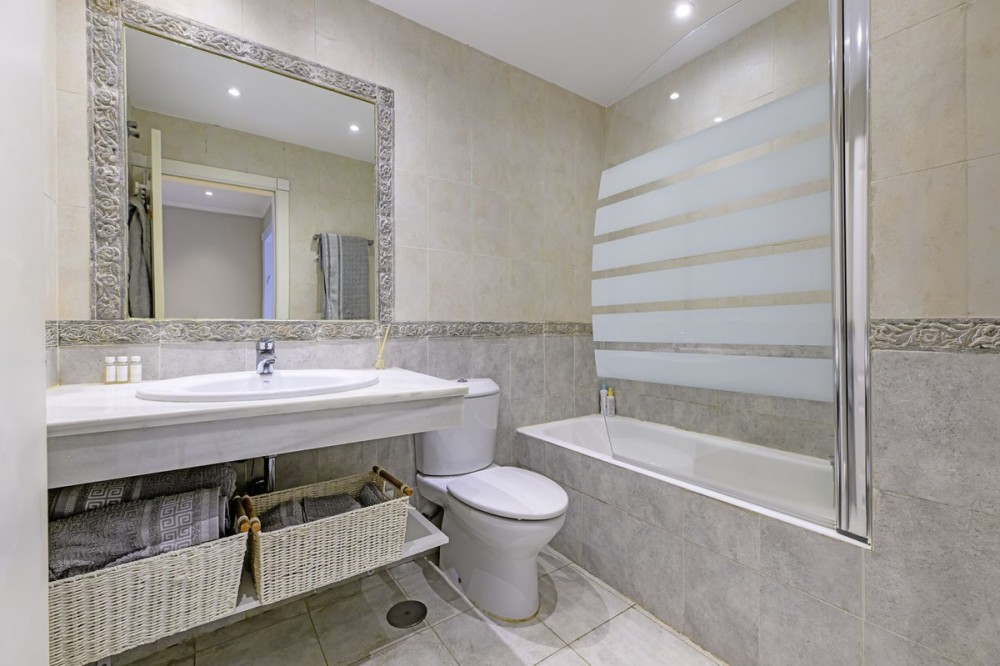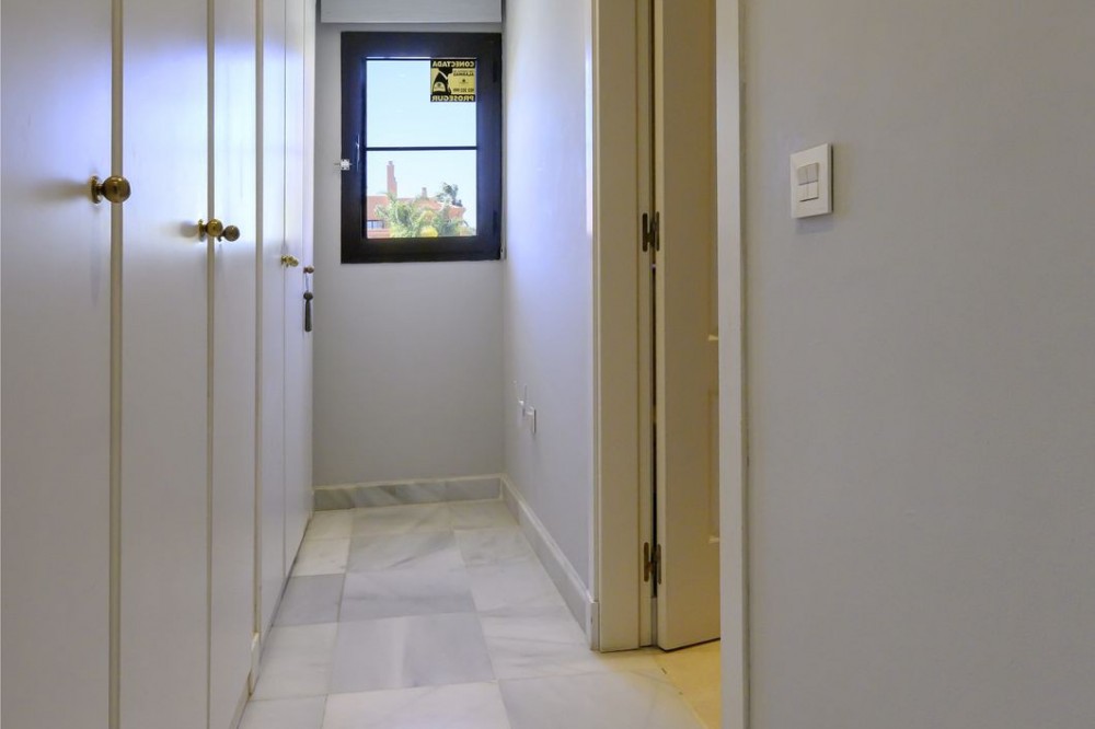 - This is a fantastic 3-bedroom, 2.5-bathroom ground floor apartment located in Hacienda del Sol, one of the most sought-after beachside urbanisations on the Costa del Sol. The community offers excellent facilities including five swimming pools, an indoor gym, sauna, padel courts, and 24-hour gated security, along with underground parking and a private storage room. The property itself was originally built in 2005 and renovated three years ago, now presented in very good condition with quality fixtures and fittings throughout, being sold fully furnished. One of the standout features is the layout. Upon entering, there is a guest toilet, which is not commonly found in this urbanisation. The fully renovated kitchen found to your right as you enter is modern and well-equipped, with access to a large rear terrace and separate utility area. The main living space is bright and spacious, combining a dining and lounge area with modern finishes and integrated lighting. This leads out to a large south-facing terrace, perfect for outdoor dining and relaxation. From here, you step directly onto a very private communal garden area that feels almost like your own, and is conveniently located close to one of the 5 pools. In addition, the property benefits from a second, north-facing terrace, providing further outdoor space and flexibility. There are three well-proportioned bedrooms. The master bedroom includes an en-suite bathroom and walk-in wardrobe, while the second and third bedrooms both have built-in cupboards and share a spacious family bathroom with bath and shower. The apartment is filled with natural light throughout and offers a comfortable and practical layout, making it ideal as a holiday home or rental investment. The location is excellent, just 150 metres from the beach, with a selection of beach bars, restaurants, and shops within easy walking distance. A great opportunity in a well-established and highly regarded community.