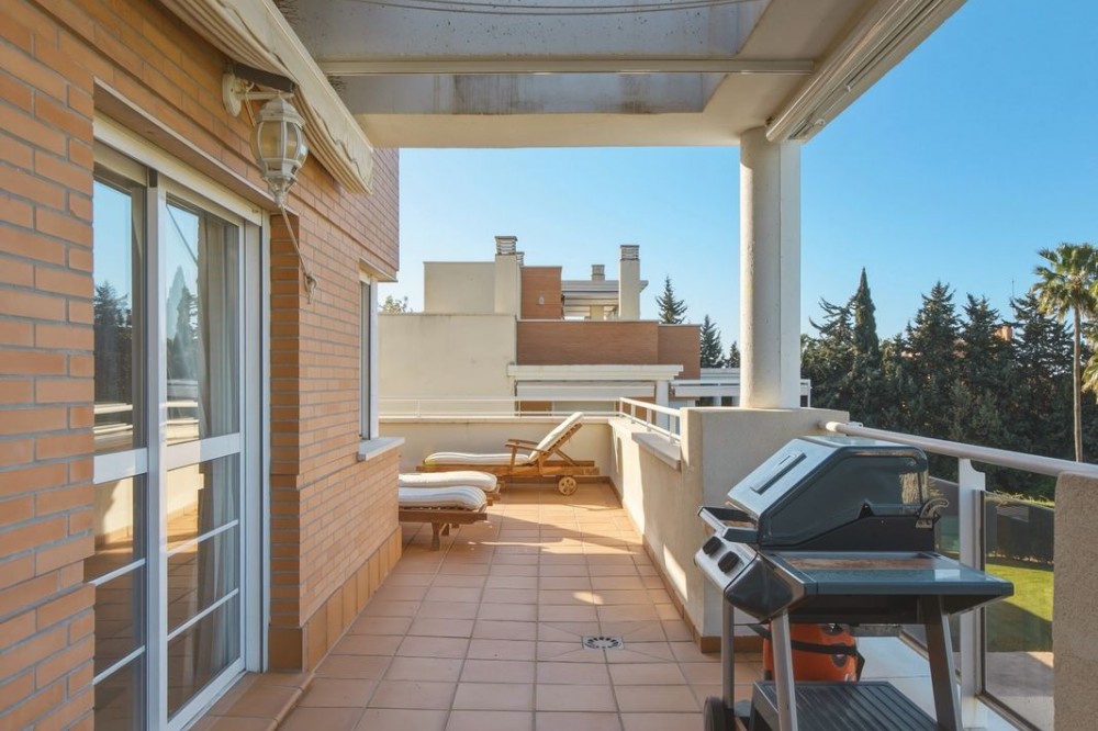 - Spacious penthouse in Dunas Green, corner unit. Exclusive corner penthouse in Dunas Green with a total of 175 m² of terraces. The main terrace faces southwest, enjoying morning sun thanks to the corner position and sun for most of the day, while the rooftop terrace gets sun all day. The property features 3 bedrooms, 2 bathrooms, and 1 guest toilet. Two covered parking spaces located next to each other. Well maintained and sold furnished. The community offers a beautiful pool, two padel courts, and spacious, well kept green areas, especially around the pool. Just a 15 minute walk to the sea.