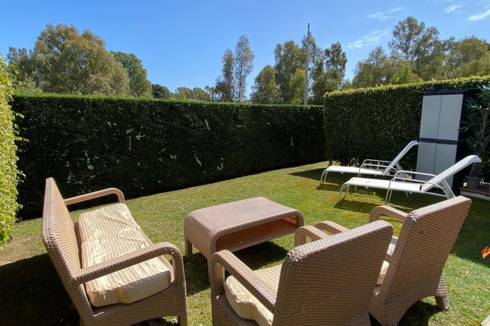 • Ontdek de mediterrane levensstijl in dit spectaculaire appartement met twee slaapkamers op de begane grond, gelegen in het prestigieuze Cortijo del Mar-complex, een oase van rust. Gelegen aan de nieuwe Gouden Mijl van Estepona, op slechts een paar minuten van Puerto Banús, Marbella en het centrum van Estepona. Een gelijkvloers appartement met twee slaapkamers en een eigen tuin, waarin klassieke Andalusische architectuur gecombineerd wordt met een eersteklas, eigentijds interieur. De indeling bestaat uit een entreehal die toegang geeft tot de ruime woon-eetkamer, een volledig ingerichte keuken met hoogwaardige apparatuur en een aparte bijkeuken, een hoofdslaapkamer met een onlangs gerenoveerde en-suite badkamer en toegang tot een lees- of studeerkamer, een tweede slaapkamer en een onlangs gerenoveerde badkamer met hoogwaardige porseleinen afwerking. De woning beschikt tevens over airconditioning (warm/koud), domotica met elektrische rolgordijnen en een geluidssysteem met luidsprekers in de woonkamer, op het terras en in de slaapkamers. Het hart van dit huis is zonder twijfel de ruime, besloten tuin. Een zonovergoten plek waar privacy en de koelte van het groen de perfecte setting creëren voor dineren in de buitenlucht, rustig lezen of simpelweg genieten van het uitzonderlijke microklimaat van de Costa del Sol. Deze buitenruimte vormt een natuurlijke verlenging van de woonkamer en verdubbelt het gevoel van vrijheid en comfort. Dit appartement op de begane grond is de ideale keuze voor zowel mensen die op zoek zijn naar een rustige, permanente woning als voor investeerders die een gewilde woning zoeken in een van de meest dynamische gebieden aan de kust. Het complex is volledig afgesloten met een hek, meerdere toegangspunten, camerabewaking en een 24-uurs conciërgeservice. De gemeenschappelijke ruimtes beschikken tevens over een spectaculair zwembad in lagunestijl, omgeven door tropische tuinen, en een exclusieve bar-restaurant aan het zwembad. Omgeven door de beste golfbanen in de omgeving (El Paraíso, Atalaya en Guadalmina). Op steenworp afstand vindt u winkelcentra, prestigieuze supermarkten, internationale scholen en exclusieve strandclubs.