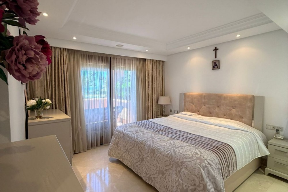 - Exclusief appartement te koop in Estepona, gelegen in een prestigieus luxe complex aan het strand, met directe toegang tot het strand en een uitzonderlijke levensstijl aan de Costa del Sol. De woning bevindt zich op de eerste verdieping en beschikt over 3 slaapkamers en 2 badkamers, met een goed doordachte indeling en veel natuurlijk licht. Twee van de slaapkamers bieden direct uitzicht op zee, wat een unieke verbinding met de Middellandse Zee creëert. Het appartement is hoogwaardig afgewerkt en beschikt onder andere over vloerverwarming, airconditioning, een alarmsysteem en rolluiken, wat comfort, efficiëntie en gemoedsrust garandeert. De woning maakt deel uit van een exclusief wooncomplex met 24-uursbeveiliging, conciërgeservice en eersteklas voorzieningen, waaronder een volledig uitgeruste fitnessruimte, sauna, buitenzwembad en prachtig aangelegde tuinen, wat zorgt voor een verfijnde en ontspannen omgeving. Dankzij de ligging direct aan het strand en de luxe voorzieningen biedt deze woning een uitstekende kans als hoofdverblijf, vakantiehuis of investering in een van de meest gewilde gebieden van Estepona.