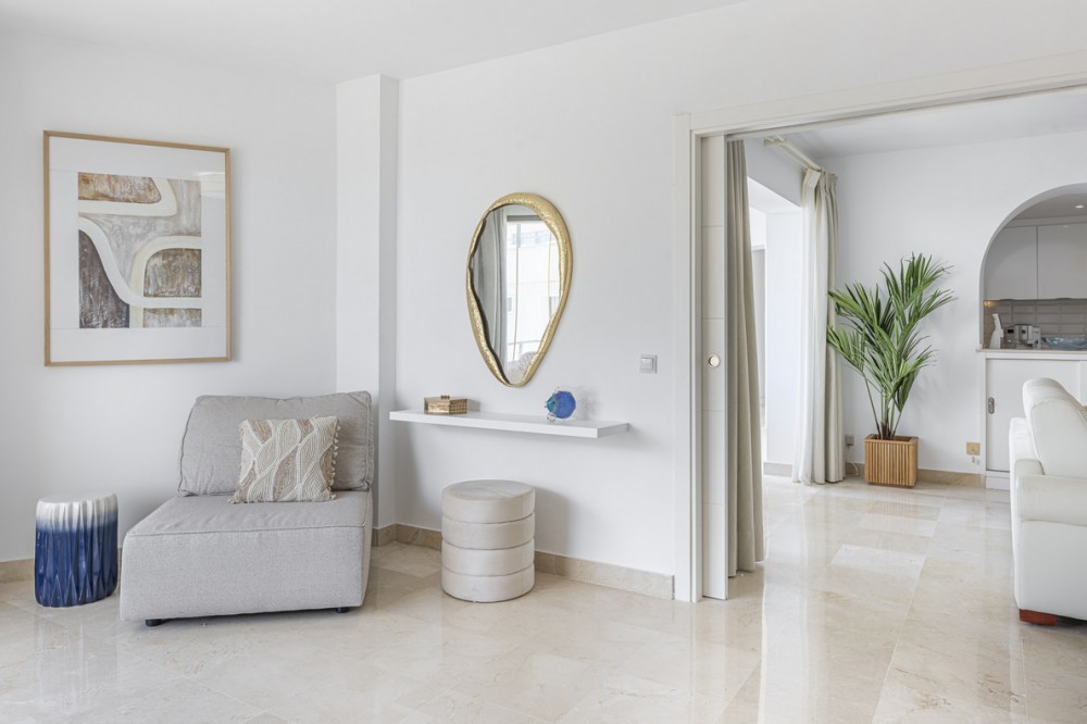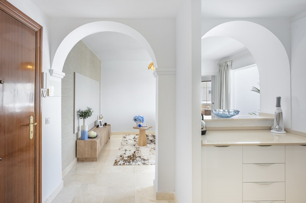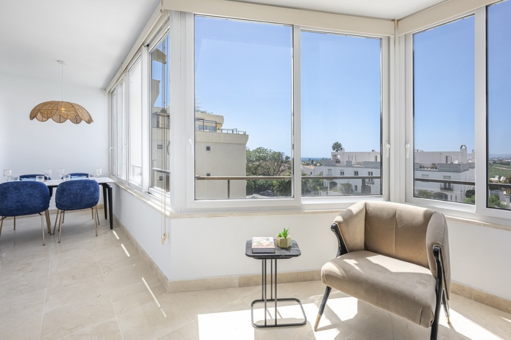 - EXCLUSIVE LISTING: Set next to Atalaya Golf & Country Club, this newly refurbished 2-bedroom apartment offers open views towards the sea and the mountains. It is in a secure, gated community with concierge service, a large pool, and well-kept gardens. The location works well for both full-time living and holidays. You are just a short drive to Marbella, close to Guadalmina Commercial Centre, and within easy reach of the beach. The A-7 coast road is nearby, making it easy to reach Estepona, Puerto Banús, and Málaga Airport. International schools, supermarkets, golf courses, and sports facilities are all within a few minutes. The apartment has been fully remodelled to a high standard and is ready for immediate use. It is bright throughout, with a sun-filled living area that opens into an open-plan kitchen. The layout is practical and easy to use, with a natural flow between spaces. The kitchen is modern and well-designed, ideal for everyday living or hosting. There are two spacious bedrooms, both with good natural light, and the property offers partial sea and mountain views. The finishes include marble floors, and the property is fitted with an alarm system for added security. This is a ready-to-move-in home, with keys available in the office for easy viewings. The area around Atalaya is well established and popular with international buyers. You have year-round access to golf, beaches, and outdoor activities. Several international schools are close by, making it a practical choice for families. Shops, cafés, and restaurants are all within a short drive, especially around Guadalmina and San Pedro. The A-7 gives you fast access along the coast, whether you are heading towards Marbella or Estepona. This is a convenient, well-connected location, with everything you need nearby, while still offering a calm residential setting. All property information provided comes directly from the owner. The listing agent acts solely as an intermediary and cannot guarantee the accuracy or completeness of these details. Prospective buyers are encouraged to conduct their own due diligence to verify important information. Thank you for your understanding.