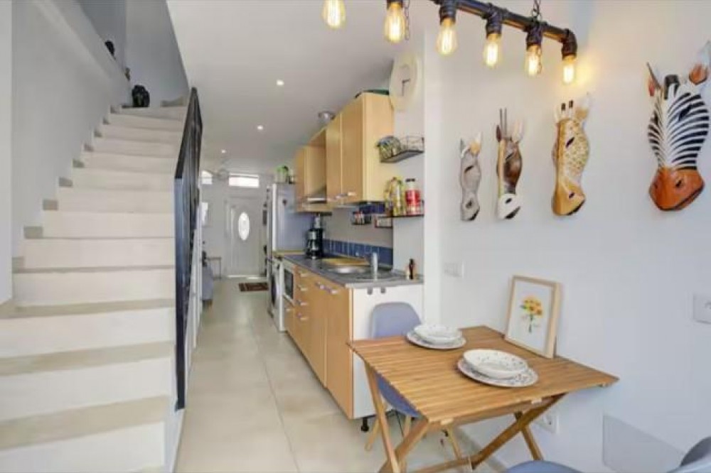 - Lovely townhouse with patio, village townhouse, built in the year 2023, located in the historic center of Estepona. Main floor consisting of living and dining area, fully fitted kitchen, guest toilet, and a patio. First floor with master bedroom and a guest bedroom with open bathroom and shower between the rooms. Walking to all amenities and 5 minutes to the beach. Possibility to make another floor, with space for another bedroom and terrace.