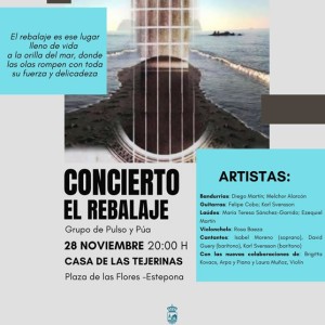 The Estepona City Council informs that next Friday, November 28, at 8:00 p.m., a concert by the string and plucked string group 'El Rebalaje' will take place at the Casa de Las Tejerinas, in the Plaza de Las Flores.