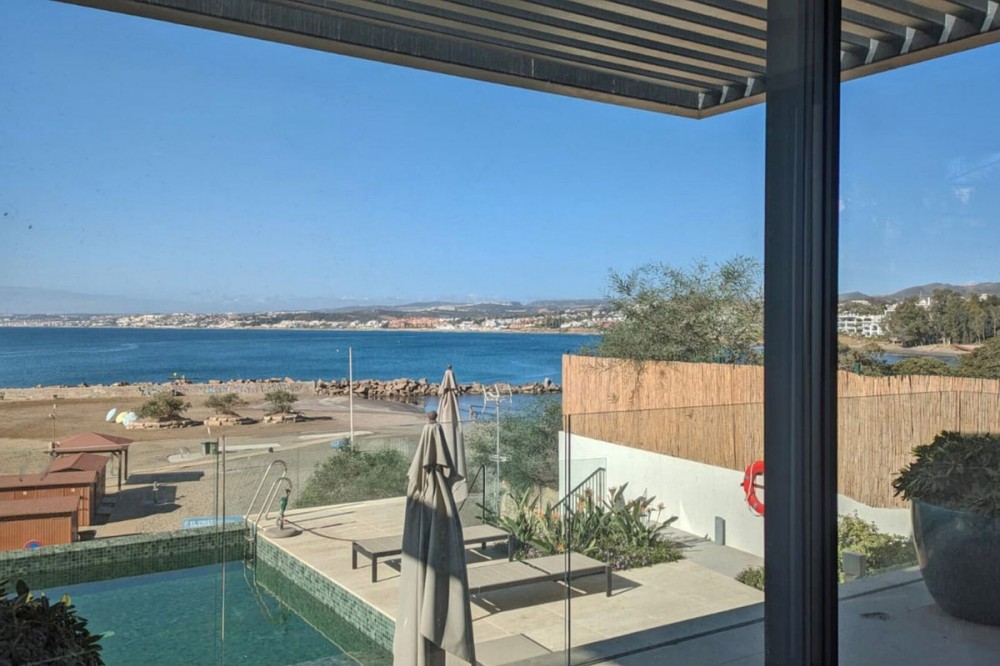 - Exclusive seafront apartment located by the popular beach of Playa del Cristo, a beautiful bay in Estepona on the Costa del Sol. These stunning home have the size, luxury and finishings of a villa and the most incredible panoramic views of the Mediterranean Sea. Luxurious three bedroom apartment for sale in this exclusive seafront resort offers a contemporary design, ample interior spaces with views out into the Mediterranean through enormous windows, and extensive terraces with private pools. The use of high-quality materials and cutting-edge technology make this development a real gem. All the homes come with at least two large garage spaces and one storeroom. This promotion has beautiful communal areas and lush gardens, including infinity outdoor and indoor pools, a full spa, sauna and fully equipped gym to enjoy all year round. There is direct access to the beach, one of the key benefits of living in a beachfront development on the Costa del Sol. The resort is located in one of the most beautiful beaches of Estepona. Just a few minutes’ walk from the marina, the town centre, with excellent connections to Marbella, Puerto Banus, La Duquesa, Sotogrande and the airports of Malaga and Gibraltar. Estepona, the town of thousand flowers, combines a rich cultural legacy and the traditional air of an old fishing village with a cosmopolitan feel. There is no shortage of golf courses nearby with 10 in the area. On top of this, Estepona has more than 20 km of beaches with plenty of bars, restaurants, and water sports.