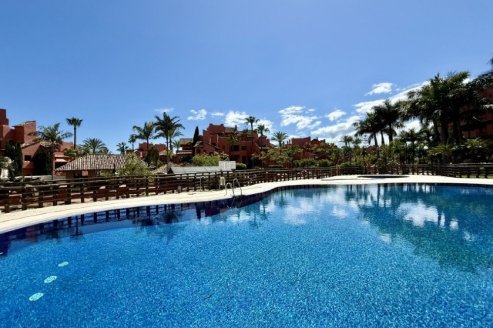 - Ontdek een fantastische kans om een duplex penthouse aan het strand te bezitten in een exclusieve urbanisatie in Estepona Oost. Deze uitzonderlijke woning heeft een fantastische ligging op het zuiden en biedt een panoramisch uitzicht op zee, inclusief het iconische silhouet van Gibraltar. Stap binnen en ontdek ruime en goed ontworpen interieurs met marmeren vloeren, een volledig ingerichte keuken, airconditioning (warm/koud) en een jacuzzi voor ultiem comfort. Het uitgestrekte hoofdterras is perfect om buiten te dineren, terwijl het privédakterras een afgesloten ruimte biedt waar u uw creatieve visie tot leven kunt brengen, of het nu gaat om een thuisbioscoop, een speelkamer of een privéretraite. Deze beveiligde, afgesloten gemeenschap biedt voorzieningen in resortstijl, waaronder twee zwembaden, waarvan er één verwarmd is, evenals onberispelijk aangelegde gemeenschappelijke tuinen. Bewoners kunnen genieten van de fitnessruimte, sauna en een stijlvolle sociale ruimte op het terrein, allemaal in een omgeving die 24-uursbeveiliging en gemoedsrust garandeert. Extra voorzieningen zijn onder andere een privégarage, lifttoegang, satelliet-tv, een alarmsysteem en een handige wasruimte. Dit penthouse ligt op loopafstand van charmante cafés, goede restaurants en natuurlijk het strand, op slechts vijf minuten van het stadscentrum van Estepona en vijftien minuten van Puerto Banús, waardoor u zich in het hart van de meest gewilde bestemmingen van de Costa del Sol bevindt. Dit pand wordt aangeboden tegen een uitstekende prijs en is een fantastische investeringsmogelijkheid. Met enkele moderne updates en een vernieuwde inrichting kunnen investeerders een stijlvolle, up-to-date afwerking bereiken en tegelijkertijd een sterk rendement op hun investering behalen op een van de meest gewilde locaties aan de Costa del Sol. Mis de kans niet om een eersteklas penthouse aan het strand te bezitten met ongeëvenaard potentieel: plan vandaag nog uw privébezichtiging!
