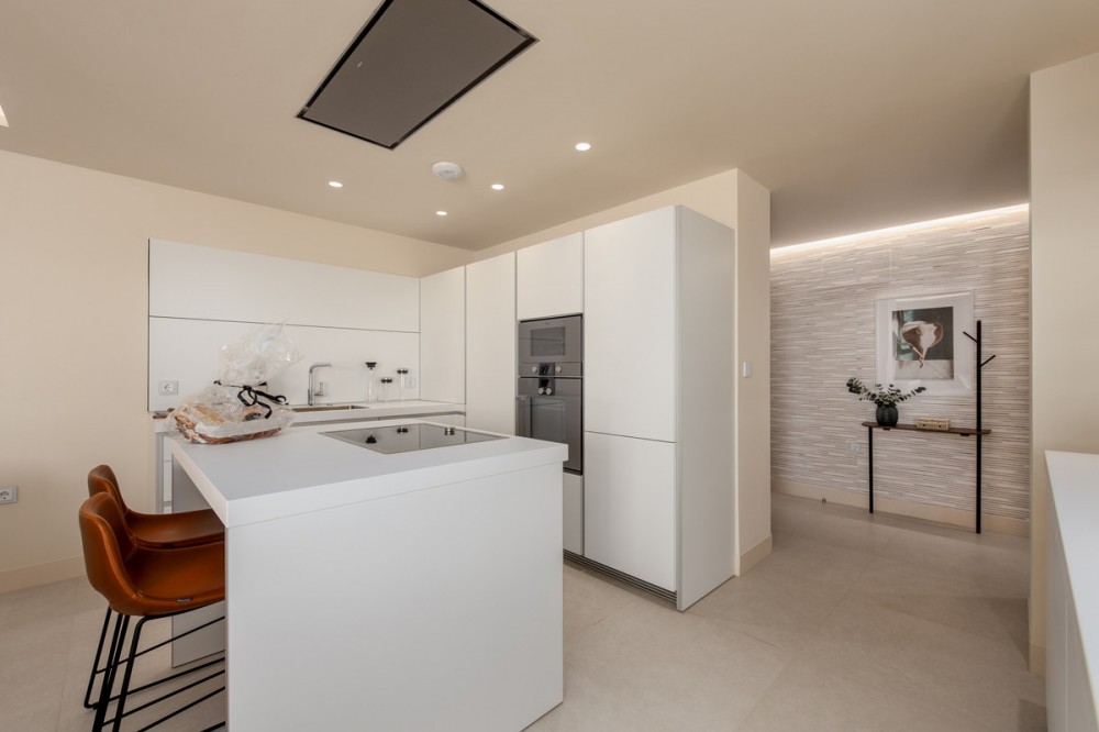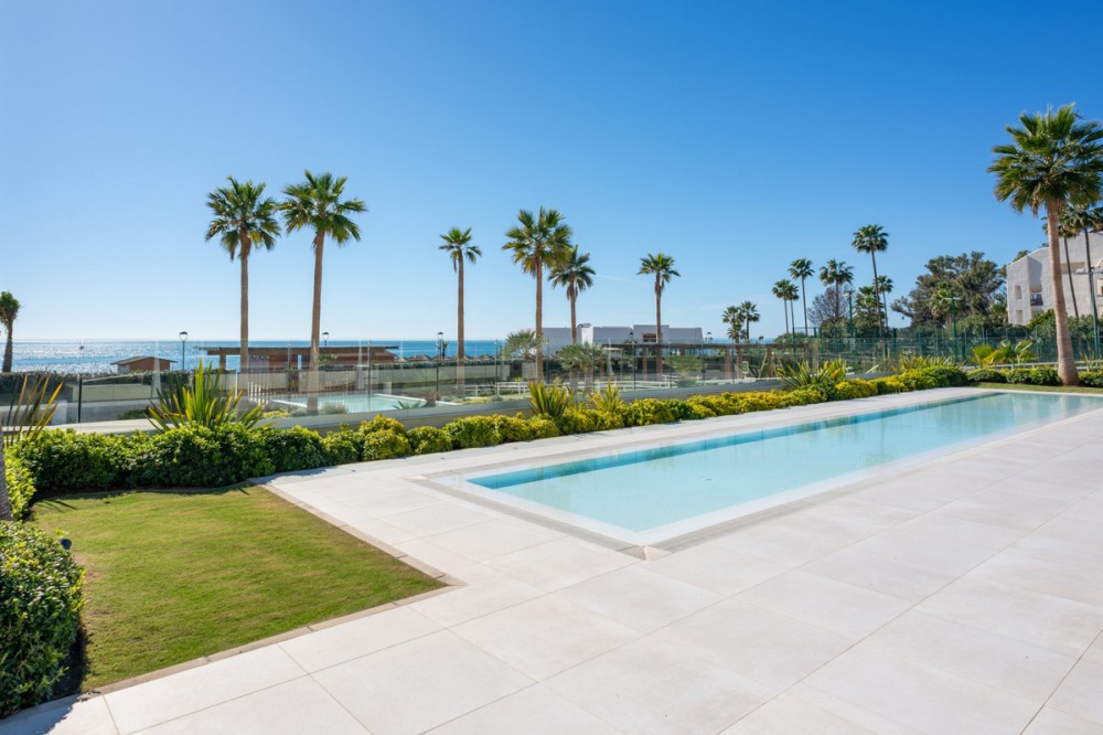 - Wonderful, brand new and absolutely frontline apartment with spectacular, panoramic, frontline sea views. The property is available immediately, and is furnished to a very high specification. It has a spacious lounge with top-end kitchen with Gaggenau appliances and a large kitchen island. There are three bedrooms, including the principal bedroom suite which enjoys direct access to the private terrace, as well as an ensuite bathroom with separate bath and walk-in shower. There is also a small dressing area. Of the additional two bedrooms, one has an ensuite shower room, the other has access to a family bathroom. All rooms have electric blinds and the property has underfloor heating and air-conditioning throughout, as well as a laundry room. There are two underground parking spaces and a store room. The Velaya complex is newly completed and has many private facilities, including an outdoor heated swimming pool, padel tennis, full tennis court and a jacuzzi. There is also direct access to the beach and 24-hour security. The complex is located frontline to the beach with the paseo maritime running directly in front giving easy access by bicycle to Estepona town. The popular Velerin chiringuito is located a few steps away and the Kempinski is a few minutes' by car. Viewings recommended.