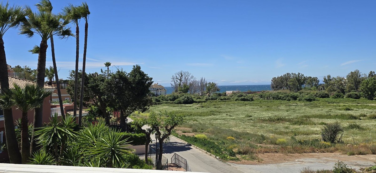 - Park Beach Penthouse with Roof terrace € 499,000 REDUCED due to road noise - Large spacious apartment, excellent rentals. One of the few residential property complexes with a beachside location and an immense Garden, large enough to be referred to as a Park. with two Lagoon pools and direct access to the beach, only metres away. This first-floor duplex penthouse offers beautiful sea views over open fields. It is a top-quality, spacious apartment with marble throughout. An elegant entrance leads to an open lounge and dining area, complete with a fireplace and high ceilings. The living room opens onto a large terrace with stunning sea views. Both bedrooms are spacious enough for super king beds or two singles, along with bedroom furniture. The bedrooms feature fitted wardrobes; one bedroom offers garden views, while the other boasts superb sea views from the bed. There are two bathrooms, both with high-quality fittings, including Grohe taps. The en-suite bathroom features twin sinks, a bath with a shower, a WC, and a bidet. The guest bathroom includes a shower, a sink, and a WC. Both bathrooms have windows, marble throughout, and underfloor heating. The kitchen is fully fitted with a fridge freezer, oven, hob, extractor fan, and dishwasher. It includes a separate laundry area with a boiler and extra cupboard space. The kitchen is spacious enough to accommodate a small dining table and has been converted into an extra bedroom in some of the apartments in this complex. Additionally, some units have opened the service hatch to create an American-style open kitchen. The entire apartment is covered by an upper solarium with flower boxes, a shower, a sink, and an area that can be easily converted into an outdoor barbecue/kitchen. The solarium is equipped with seating and a pergola, is completely tiled, and offers exceptional views of the sea and mountains.