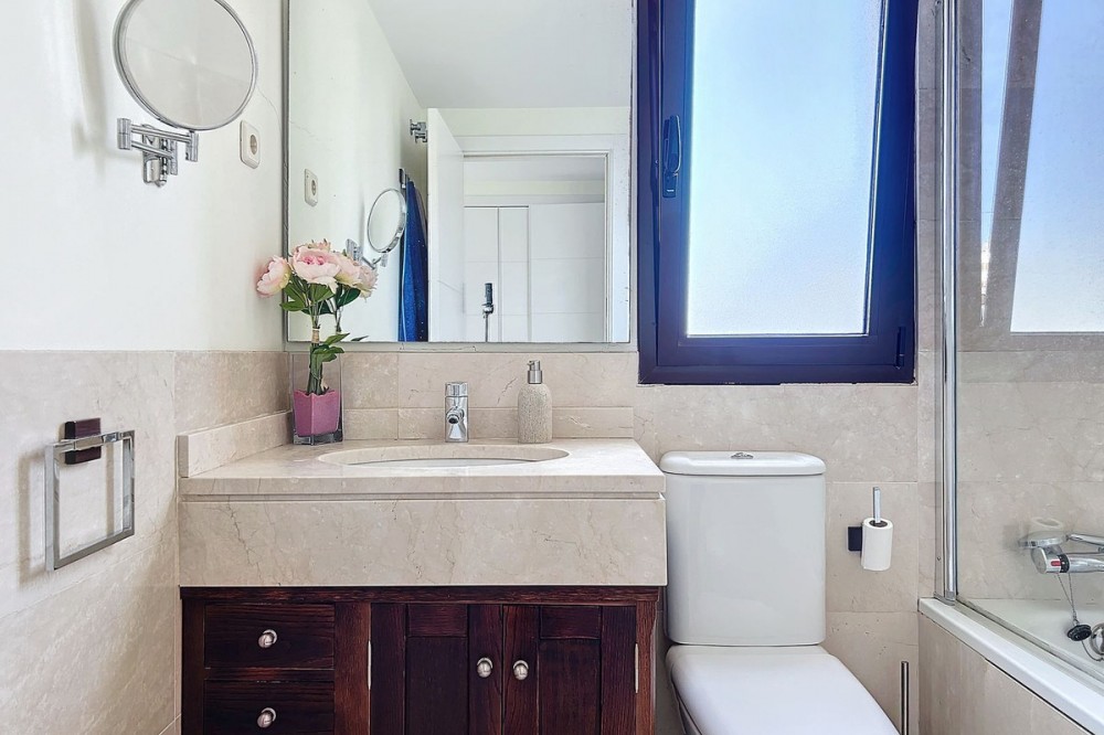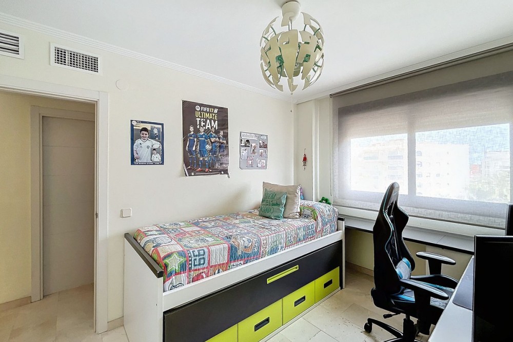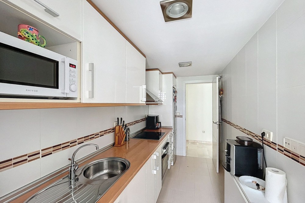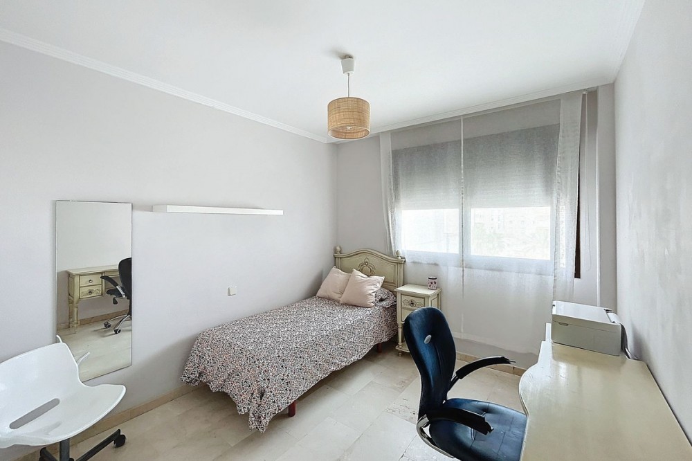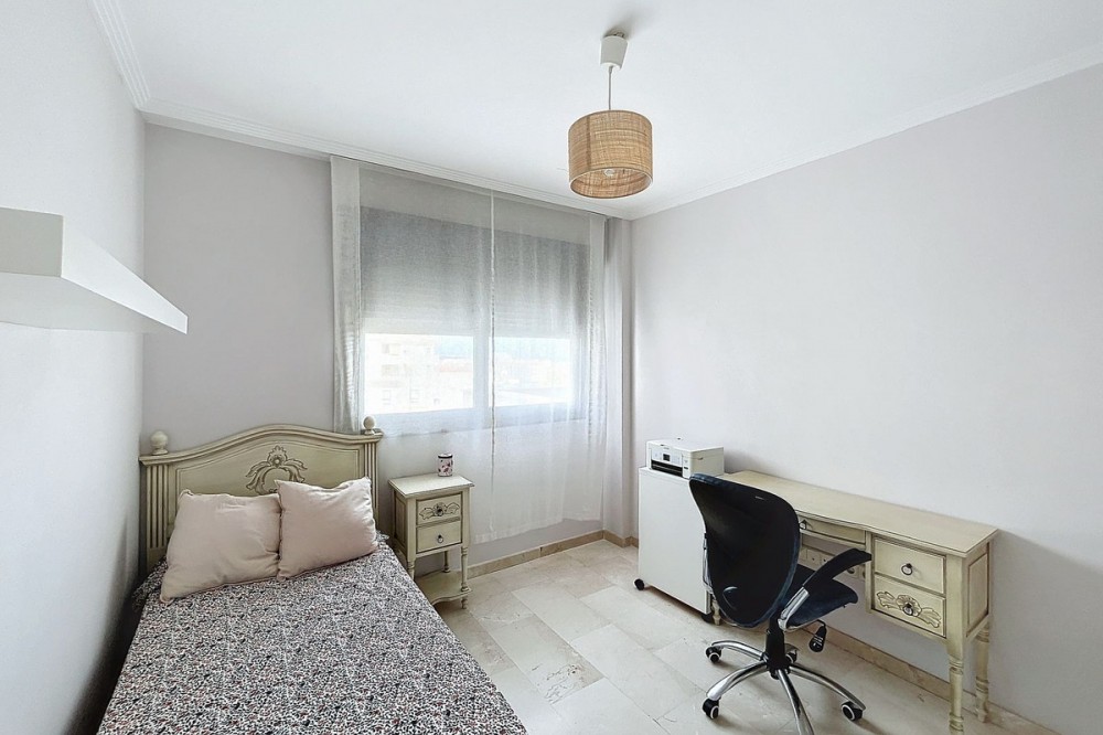 - We have current photos and renders showing how the apartment can look after a minor renovation and new furnishings. Discover this elegant and modern apartment located between Las Mesas and Huerta Nueva, just minutes from the beach, supermarkets (El Corte Inglés, Mercadona) and the old town, perfect for those seeking luxury and a great location. Featuring a sleek and functional design, the living-dining area can be seamlessly integrated with the kitchen to create the ideal space for family gatherings and social moments. The property boasts two terraces, providing south, east, and west orientations, ensuring abundant natural light and offering the perfect spot to soak up the Mediterranean sun. The apartment includes three spacious bedrooms, with the master suite featuring an en-suite bathroom and direct access to a private terrace with sea views. Additionally, there is a large garage space and storage room, both included in the price. The furniture is optional, offering flexibility for the buyer. The complex features beautiful communal areas, including landscaped gardens, a pool, and a paddle tennis court! This is an excellent opportunity to acquire a property in a highly sought-after area, just minutes from the beach and surrounded by all essential services. Supermarkets like El Corte Inglés and Mercadona are only 200 meters away, and the old town and Las Mesas fully-equipped gym are less than 10 minutes walking distance. Don’t miss out on this unique opportunity!