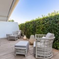 - This stunning modern apartament is located in Estepona's premier beachfront development, awarded with the first prize for ‘Best Architecture Multiple Property’ at the prestigious ‘European Property Awards’. The lovely ground floor features spacious master bedroom with bathroom on suite, guest bedroom with bathroom, both with an access to the private back terrace. The owner makes a lot of upgrades like: marble flooring from Tino or modern and elegant wardrobe in master suite. The bathrooms are finished by the prestigious Dornbracht brand. Kitchen is fully equipped with Gaggenau appliance with double fridge and freezer with ice maker, coffee maschine and warming drawer, ideal for preparing family meals in elegant space. The kitchen area is integrated with the living area. The floor-to-ceiling glass doors gives the bright and lead to the into a generous over 32 m2 terrace and private use garden. Here you can enjoy spectacular sea views. The apartment was designed with great attention to detail and the highest quality of finish, all rooms have LED lighting installed in the ceilings, in the living room there are additional LED floor strips with division into zones and dimmers in all rooms allowing to create a unique atmosphere in the evening. The apartment is located in block 4, it is an elevated ground floor, practically the level of the first floor, which guarantees the best sea views and privacy. The Edge offers their residents access to world- class amenities. The outdoor pool with panoramic views of the Mediterranean Sea and to Gibraltar, large indoor pool, spa with hammam, sauna, jacuzzi and steam room providing a complete wellness experience and make it a perfect place to enjoy the family holidays but also to make your investment profitable. A fully equipped gym and panel court ensure all fitness needs are covered. The development offers also modern design social club co-working space and 24h security. There is a parking space in underfloor garage and storage belongs to the apartament. The location of the complex is unbeatable, situated directly on the beachfront but also close to the restaurants and shops, only few minutes drive to the Marina of Estepona and the city center of Estepona. The distance to the airport is 1h by car Must be seen!