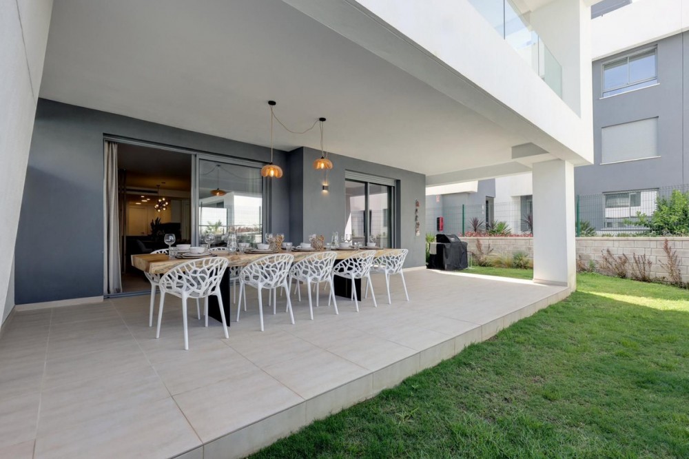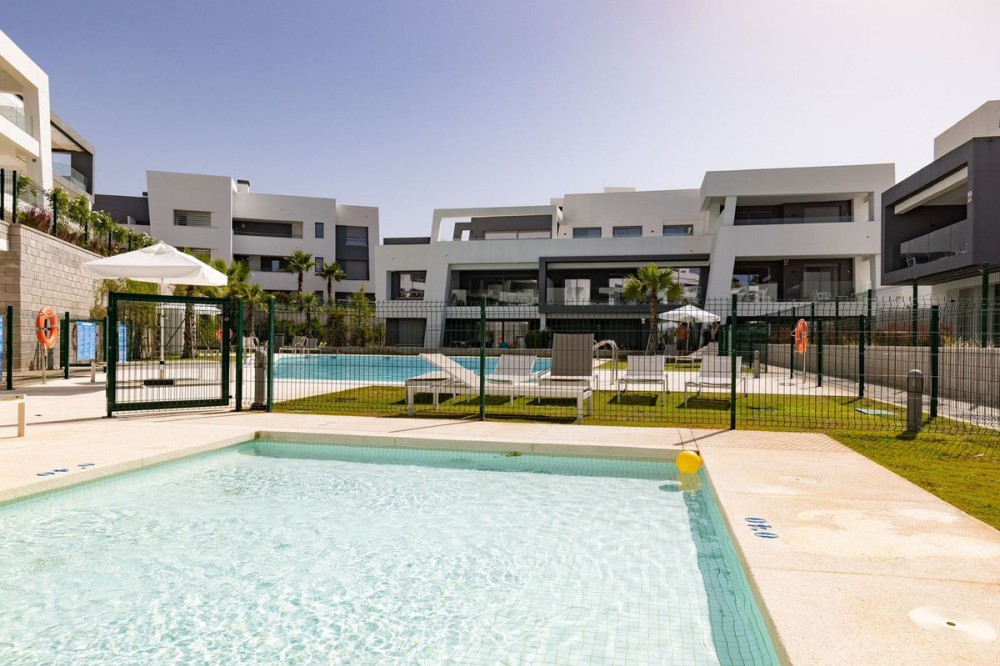 - **Stunning Ground Floor Apartment in New Golden Mile Estepona** Discover the epitome of modern living with this exquisite 2-bedroom apartment located in prestigious urbanización , just a stone's throw away from the beach. Perfectly positioned between Marbella and Estepona, this home offers the ideal blend of tranquility and convenience. Surrounded by lush nature and close to top-tier golf courses, it's a paradise for both relaxation and recreation. Step inside to find a beautifully furnished interior with all the comforts you could desire. The open-plan kitchen is fully equipped with luxury appliances, making it a chef's dream. The spacious living room features a comfortable sofabed and opens onto a private terrace and garden, perfect for entertaining or unwinding after a long day. The master bedroom boasts an ensuite bathroom and direct access to the terrace, while the second bedroom offers a cozy double bed and ample wardrobe space. With centralised air conditioning throughout, you'll stay comfortable year-round. Additional features include a private underground parking space, a storage room, and access to two large swimming pools, a kids' pool, gym, sauna, and more. This gated complex ensures security and peace of mind, making it an ideal choice for holiday homes, luxury living, or investment. Don't miss the opportunity to own a piece of paradise in one of the most sought-after locations on the Costa del Sol! Fully furnished. Ground Floor Apartment, Estepona, Costa del Sol. 2 Bedrooms, 2 Bathrooms, Built 93 m², Terrace 40 m², Garden/Plot 60 m². Setting : Close To Sea, Close To Town, Close To Schools, Urbanisation. Orientation : West. Condition : Excellent. Pool : Communal, Children`s Pool. Climate Control : Air Conditioning, Hot A/C. Views : Garden, Pool. Features : Covered Terrace, Lift, Fitted Wardrobes, Near Transport, Private Terrace, WiFi, Gym, Sauna, Paddle Tennis, Storage Room, Utility Room, Barbeque, Double Glazing, Fiber Optic. Furniture : Optional. Kitchen : Fully Fitted. Garden : Private, Easy Maintenance. Security : Gated Complex, Electric Blinds, Entry Phone, Alarm System, Safe. Parking : Underground, Garage, Covered, Street, Communal. Category : Holiday Homes, Luxury, Resale.