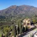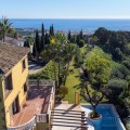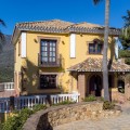 - Located in the tranquil hills behind the urban center of Estepona, this expansive villa offers exceptional potential and breathtaking views of the mountains, the Mediterranean Sea, Gibraltar, and even the African coastline. Set on a generously sized plot of just over 6,000 sqm, the property boasts terraces with fruit trees, a large landscaped garden, and ample outdoor space for relaxation and entertainment. Conveniently located, it’s only a 7-minute drive to Estepona's vibrant center—or for the adventurous, a one-hour hike. The property welcomes you through a charming courtyard with a fountain or a formal driveway. There is ample parking for three or more cars, along with a carport. The villa spans three floors, each with multiple terraces designed to maximize the stunning vistas. The entrance level features an elegant double-height hall with a staircase leading to the upper and lower floors. On this level, you’ll find a cozy sitting room with a working fireplace, a dining room, a fully equipped kitchen, and a guest cloakroom. A large terrace offers the perfect setting for hosting dinners while enjoying panoramic views. Upstairs, the spacious master suite includes a dressing room and a spa-style en-suite bathroom. Two additional bedrooms, one set up as a double room and the other as a single guest room, share a guest bathroom. All bedrooms are fitted with built-in wardrobes and enjoy picturesque views. The lower level offers remarkable versatility. It currently features two large double bedrooms, one smaller bedroom, two separate shower rooms, and an open-plan sitting room with access to a covered terrace and the pool area. A secondary kitchen, added to what was once a storage room, transforms this level into a self-contained three-bedroom apartment—ideal for guests or extended family. The villa is equipped with oil heating and working fireplaces, ensuring comfort throughout the year. The garden and pool area can be accessed from the lower level or via a staircase from the courtyard. The pool area is a true highlight, offering uninterrupted views of the mountains, the Mediterranean, Gibraltar, and Morocco. A dedicated BBQ area adds to its charm, making it the perfect spot for outdoor entertaining. Contact me today for a tour!