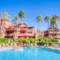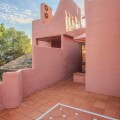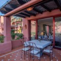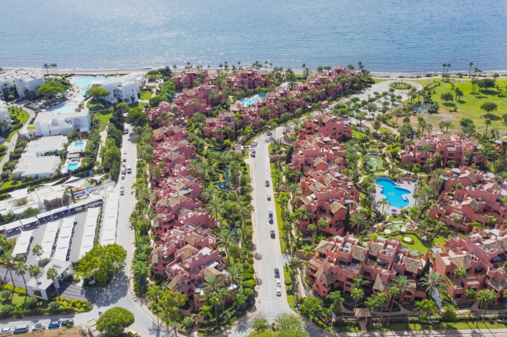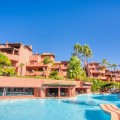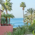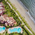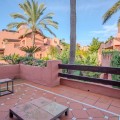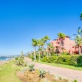 - Impressive three bedroom south facing duplex penthouse in the prestigious and gated beachfront community Menara Beach, Estepona. This sought-after complex has well-kept tropical gardens, outdoor communal swimming pool, indoor heated swimming pool and gymnasium, as well as being just ten minutes’ drive to Puerto Banus and a short drive to shops, restaurants and all amenities. The property has an open plan living and dining area with patio doors leading to two private terraces with beautiful sea views; fully fitted kitchen with separate laundry area; guest suite with access to the terrace; guest bedroom; and a guest bathroom. The upper-level leads to the impressive master suite with vaulted ceilings and a private terrace; on this level there is an additional large terrace with BBQ area and stunning views of the community and sea. Other features include fitted wardrobes throughout, marble floors, hot and cold air conditioning, underfloor heating in the bathrooms, private parking and store room.