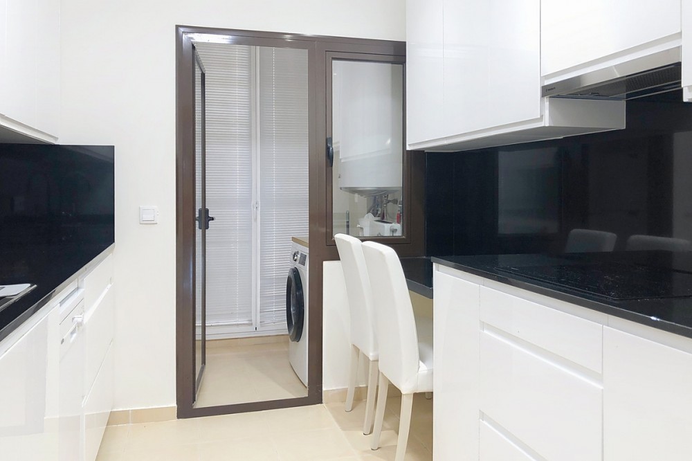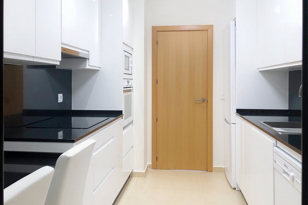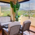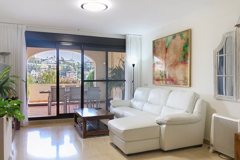 - This apartment is located in Estepona West, right next to the Azata Golf course. Situated on the front line of the golf course and in a mountainous setting, it offers spectacular views of the golf course, the mountains, and a nearby lake. Additionally, its proximity to the sea, the city center, and restaurants makes it an ideal option for those seeking comfort and tranquility in a natural environment. The interior of the property features a spacious and bright main living room with direct access to a large private terrace enclosed with Lumon glass, perfect for enjoying the outdoors and golf views both in summer and winter. The kitchen has been completely renovated with high-quality furniture, fully equipped, and designed to maximize functionality, including a separate laundry area. Marble floors and glass doors add a modern and elegant touch to the space. The apartment has three bedrooms, all with built-in wardrobes, and two bathrooms in excellent condition. The high-quality finishes and functional layout with spacious areas ensure comfort for the entire family or guests. The property is sold furnished, and the price includes one parking space and a storage room. The property is equipped with air conditioning, electric blinds, double glazing, and a reinforced door for added security. Additionally, the building features an elevator and a secure entrance. Residents can enjoy mature gardens, several communal swimming pools, and a social club area. The community is gated and offers a safe and peaceful environment, ideal for enjoying life on the Costa del Sol.