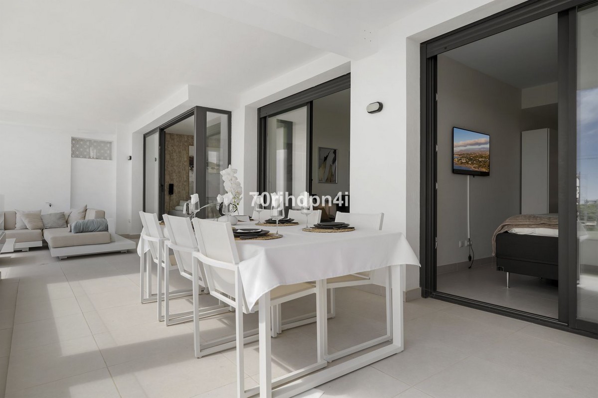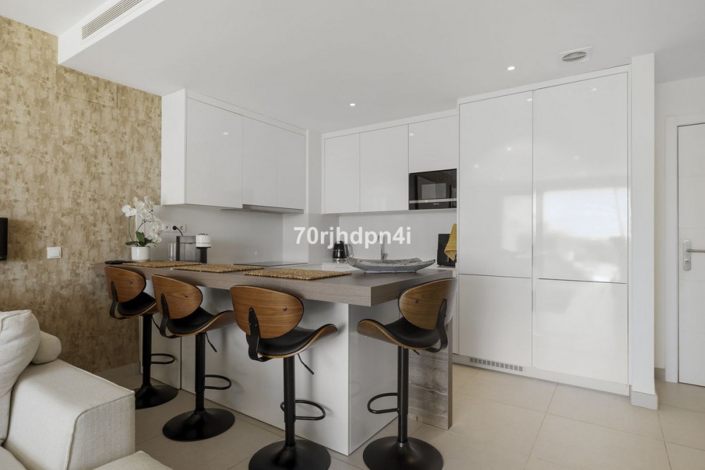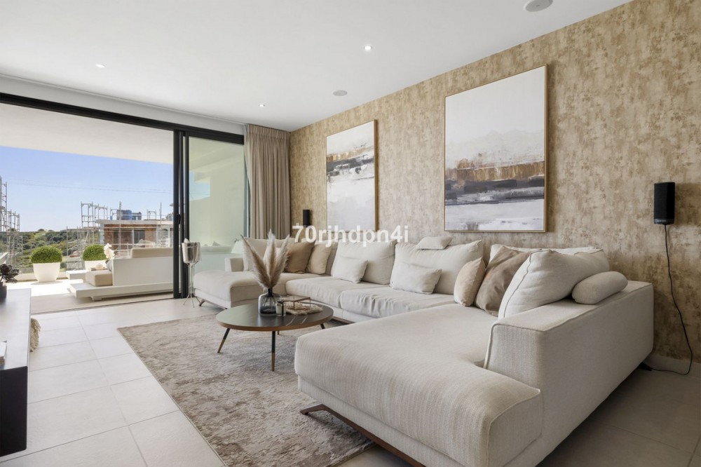 - Modern Apartment in Mirador del Golf, Estepona This stylish and modern apartment in the exclusive Mirador del Golf in Estepona West offers a unique opportunity for those seeking peace, nature, and a touch of luxury — just minutes from the beach and the charming old town of Estepona. The location is truly exceptional: right next to Estepona Golf, in a green and tranquil setting with panoramic views over the valley and the sea. Yet, in just 5 minutes, you can reach the lively town centre of Estepona, with its pedestrian-friendly streets, cosy chiringuitos, golf clubs, international schools, boutique shops, and gourmet restaurants. Puerto Banús is only 20 minutes away, Marbella just 30 minutes by car. The apartment is situated on the first floor of a recent 2022 building and is east-facing, with plenty of natural light thanks to its large floor-to-ceiling windows. The elegant open-plan living space features a fully equipped kitchen, a cosy sitting area, and direct access to a spacious covered terrace — ideal for enjoying the Mediterranean lifestyle to the fullest. The master bedroom includes an en-suite bathroom, and both bedrooms open onto the terrace — perfect for catching the fresh morning breeze or sipping an aperitif at sunset. The urbanisation itself is safe and well-maintained, offering an elevated communal swimming pool with spectacular views, a fully equipped gym, landscaped gardens, and underground parking. An ideal opportunity for anyone looking for a second home, an investment property, or a carefree holiday apartment under the sun.