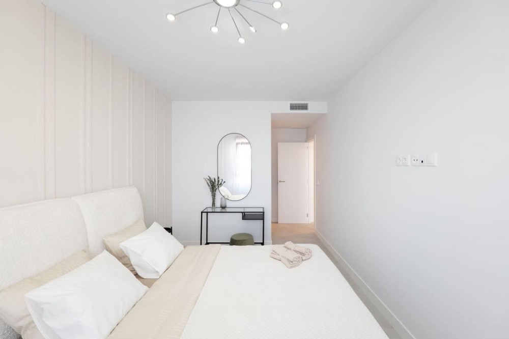 - READY TO MOVE IN – BRAND NEW – RESALE Not from developer – direct sale! Modern 2-Bedroom Apartment in a New Residential Complex in Estepona Bright and spacious apartment located on the first floor of a newly built residential complex, just minutes from the beach, town center, and marina. Layout and features: - Open-plan living and dining area with integrated kitchen - Master bedroom with en-suite bathroom - Second bedroom and a second full bathroom - Cozy terrace perfect for outdoor relaxation Included in the price: - Underground parking space - Private storage room (trastero) Complex amenities: - Swimming pool and landscaped gardens - Fully equipped gym - Modern construction and high energy efficiency Perfect as a permanent home, holiday retreat, or investment with great rental potential.