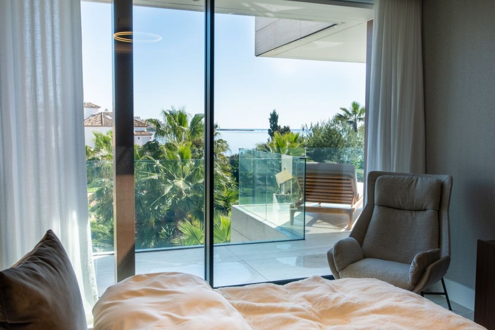 - **Luxury Beachfront Apartment in Estepona** Discover this spectacular beachfront apartment located in Estepona on the Costa del Sol. With 112.63 m² of living space plus an impressive 40 m² terrace, this home offers stunning sea views. The apartment features two spacious bedrooms of 23 m2 and 19 m² and two elegant bathrooms, perfect for everyday comfort. It also includes two underground parking spaces and a storage room. This exclusive complex, with 24-hour security and reception, consists of only 15 apartments, ensuring privacy and a welcoming atmosphere. Enjoy the communal areas, which include an outdoor pool, an indoor heated pool, a gym, and a relaxation room—ideal for maintaining an active and healthy lifestyle. With direct access to the beach and the promenade, every day is an opportunity to enjoy the sun and the sea. Estepona offers all kinds of amenities just around the corner: gourmet restaurants, designer boutiques, and golf courses. The apartment is designed by a renowned interior architect, combining elegance and functionality. The price includes the furniture. The property features underfloor heating, a smart home system, and a smart lock. Don’t miss this unique opportunity! This home is move-in ready and waiting for you to start enjoying life on the Costa del Sol.