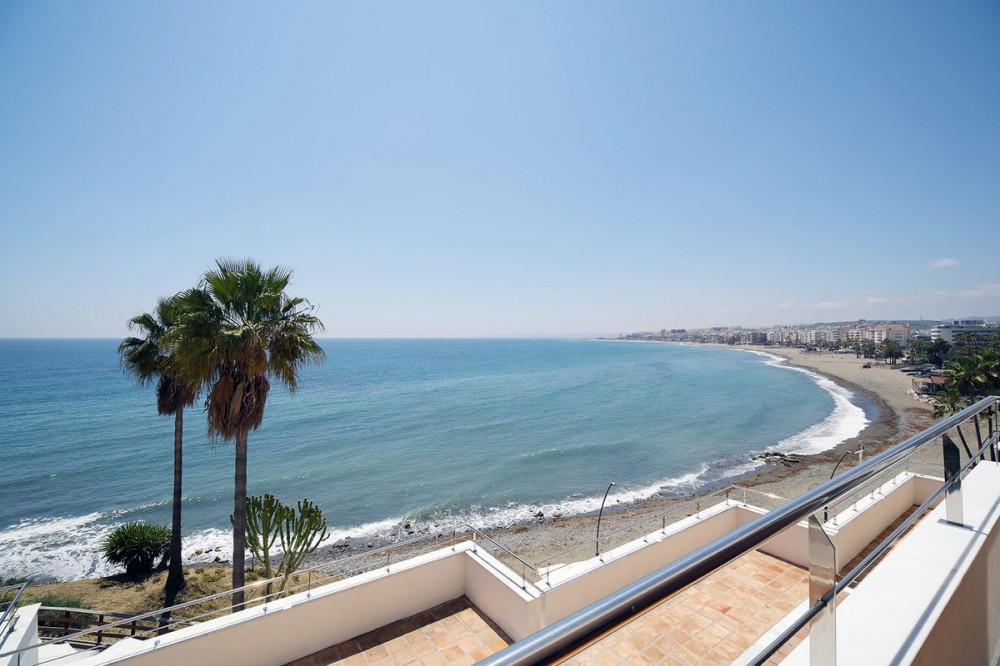 - LOCATION - LOCATION - LOCATION In the best located building in Estepona, right by the sea and at the beginning of the promenade lies apartment building Jacaranda. There is now a unique opportunity to buy an apartment in this building where there is hardly ever anything for sale. The Carrefour, a large supermarket is next door. At the bottom of the building, on the promenade are 3 bars and an excellent fish restaurant where you can enjoy a drink, a snack or meal in the sun until late in the afternoon. The distance to the centre of the village with its many restaurants, beach clubs, bars and cosy shops is 7-10 minutes' walk. The marina can be reached via the promenade a 40-minute walk away. This apartment has 1 very spacious bedroom and 1 bathroom with walk-in shower. The apartment has an area of 55 m2. Enough metres to create a 2nd bedroom through a simple renovation. The covered terrace is 22 m2 and faces south. The garden with swimming pool and separate children's pool is for the exclusive use of the residents. There is closed parking in front of the door. The building and apartment are wheelchair accessible. Lift access is available. The property comprises a living, dining room, an open-plan, small but well-equipped kitchen, 1 bedroom and 1 bathroom. Additional amenities include high-speed fibre-optic Wi-Fi and air conditioning (hot and cold).