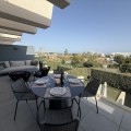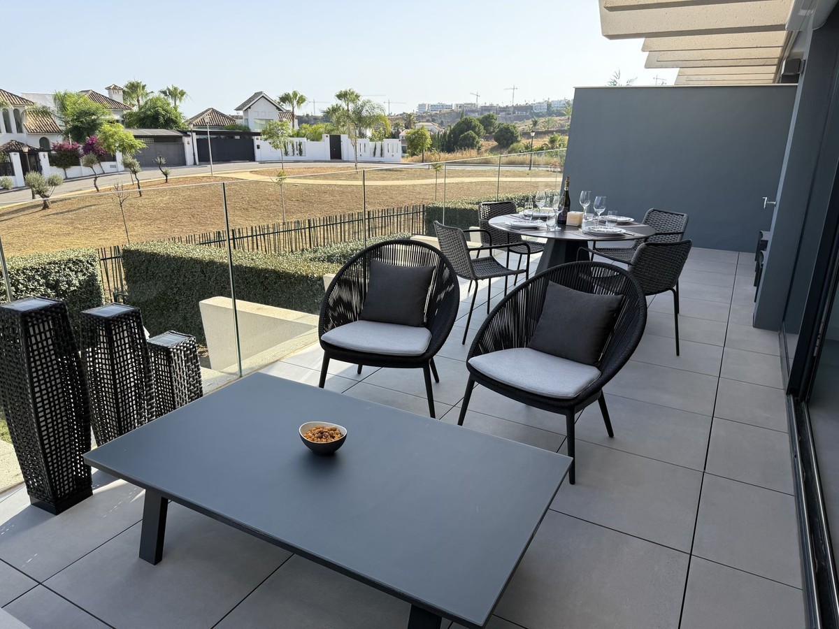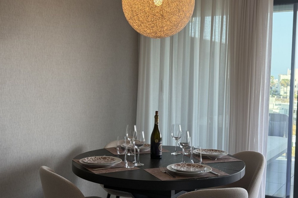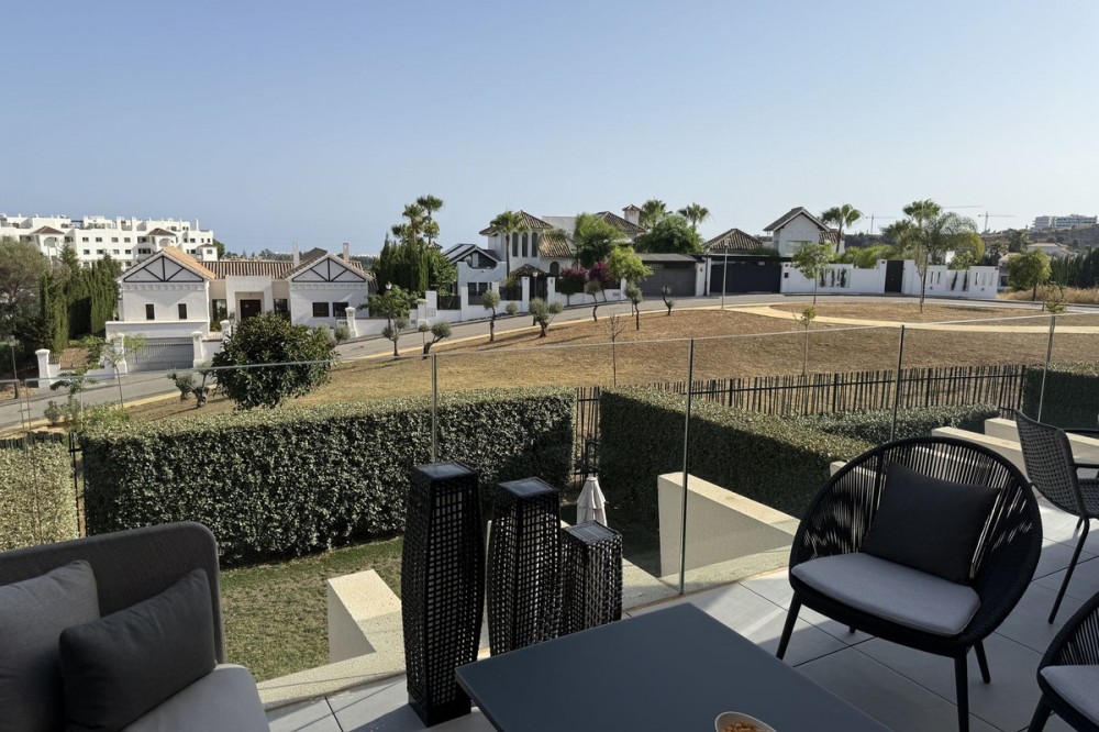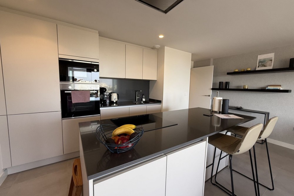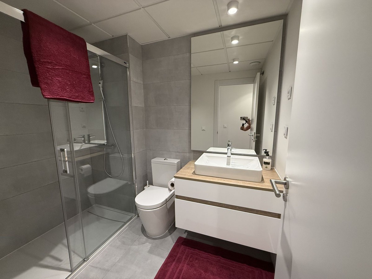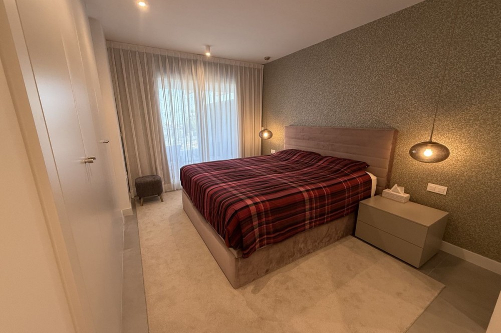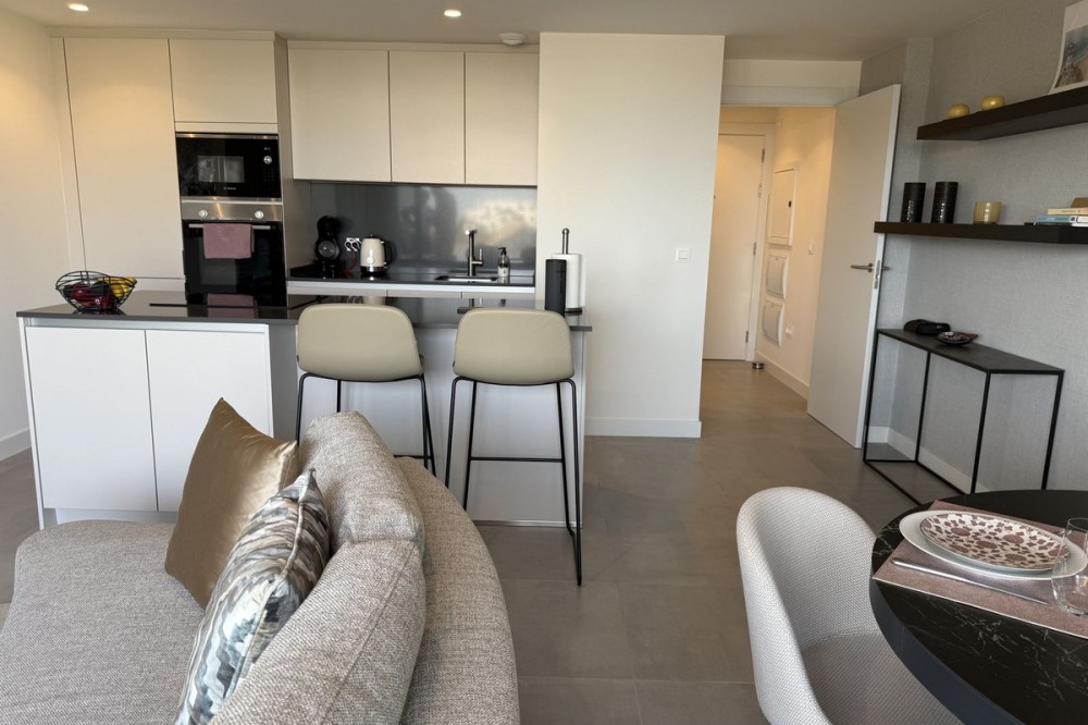 - Elegant 2-Bedroom Apartment with Sea Views in Oasis 325 – Turn-Key with (optional) Designer Furnishings On the gentle hills that follow the Guadalmansa River on its way to the sea lies Oasis 325 – a privileged residential enclave ideally located between Estepona and Marbella. Its elevated position offers breathtaking views over the Mediterranean and surrounding natural areas, creating a serene, private atmosphere just minutes from the best of the Costa del Sol. This beautifully appointed 2-bedroom apartment is situated on one of the best spots within the development, offering uninterrupted sea views, lush green surroundings, and exceptional peace. Delivered in 2021–2022 and maintained in impeccable condition, the property is presented fully furnished with refined designer pieces and is ready to move into – a true turn-key residence. The interior living space of 102 m² flows naturally into a spacious 28 m² terrace that faces southwest, ensuring sun from late morning until sunset. The layout includes an open-plan living and dining area with large sliding doors that open directly onto the terrace. The fully equipped kitchen is centered around a sleek island with integrated induction hob, combining elegance and functionality in a space designed for both cooking and socialising. The master bedroom offers direct access to the terrace and enjoys spectacular views of the sea – a rare and privileged feature. The second bedroom is also generously sized, and both bathrooms are equipped with walk-in showers and finished in a modern, minimalist style. Throughout the apartment, high-quality materials, tasteful decoration, and abundant natural light create an atmosphere of calm and understated luxury. The terrace itself is ideal for year-round enjoyment, featuring a cosy side corner that captures the lower winter sun and a smart, automatically retractable sun awning that adjusts based on wind strength. Thanks to a large protected green zone in front of the building, the views will remain unobstructed indefinitely, offering permanent visual space, silence, and privacy. As a resident of Oasis 325, you’ll enjoy access to a wide range of first-class facilities designed to promote wellness and relaxation. These include an outdoor infinity pool with separate children’s section, both surrounded by soft-touch synthetic grass, and a heated indoor pool with a beautiful cascade fountain. The wellness area features a sauna and Turkish bath, and the fully equipped gym includes separate male and female changing rooms, each with showers and private lockers. A modern co-working lounge completes the offering, ideal for remote professionals or digital nomads. The apartment comes with one underground parking space and a spacious private storage room in the basement, with more than enough space for electric bikes and additional storage needs. Additional features include energy-efficient hot and cold air conditioning, solar-assisted aerothermal water heating, double-glazed windows, and high thermal insulation, contributing to the property’s excellent A/B energy rating. This property represents a rare opportunity to enjoy modern Mediterranean living at its finest – combining panoramic sea views, timeless design, and full peace of mind in one of the most desirable developments on the Costa del Sol. Design furniture is not included in this price but possible at additional cost (30K)