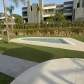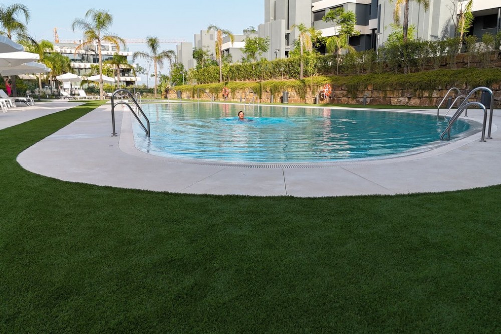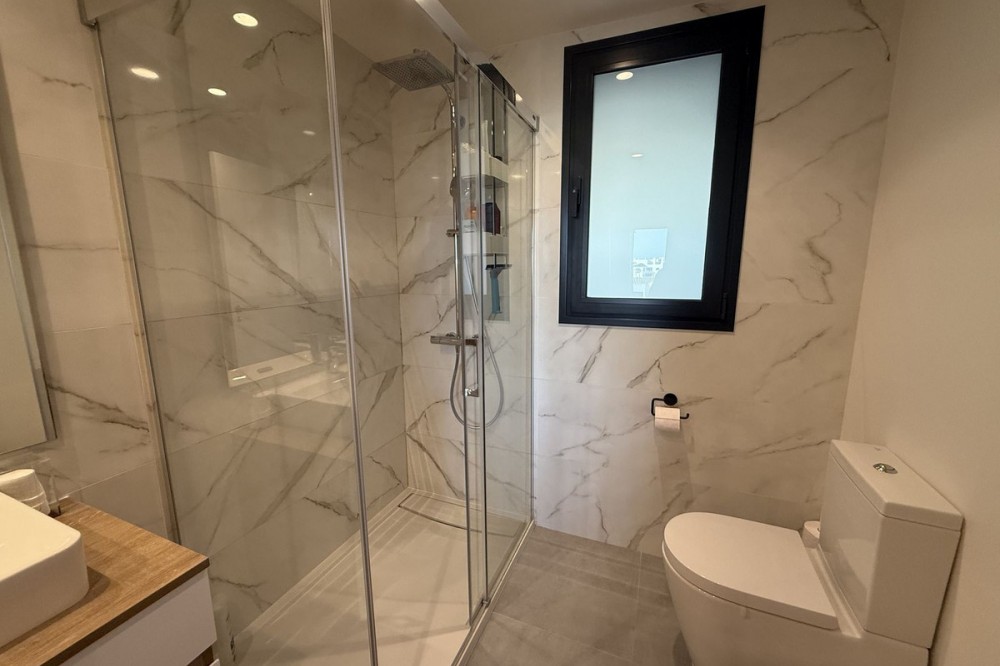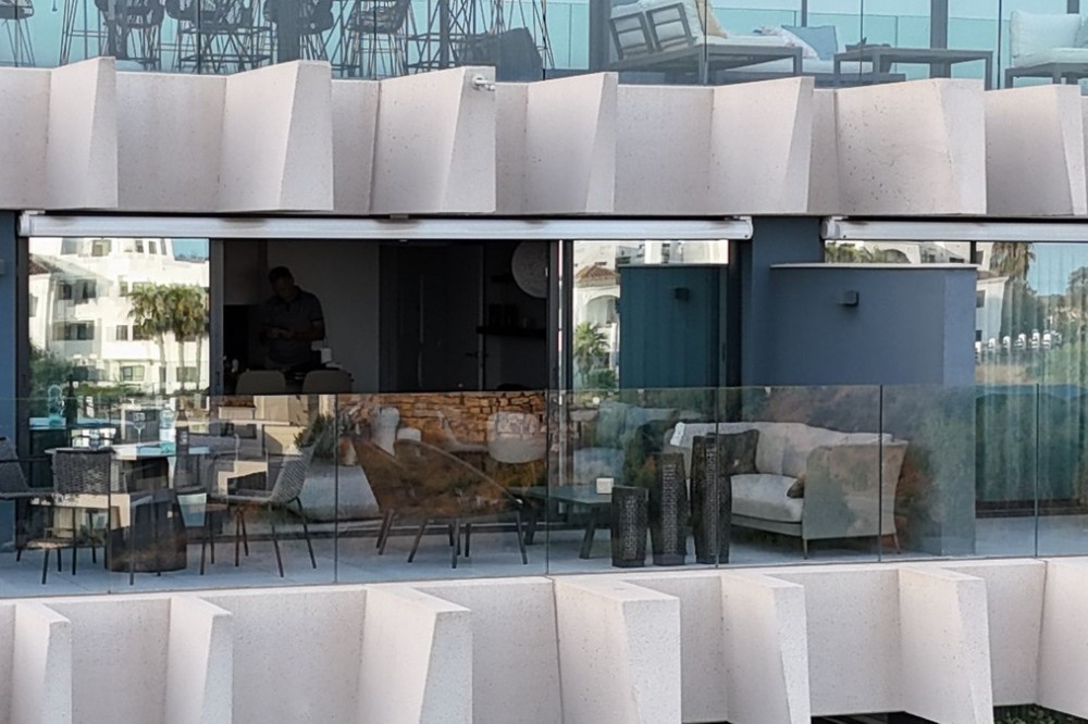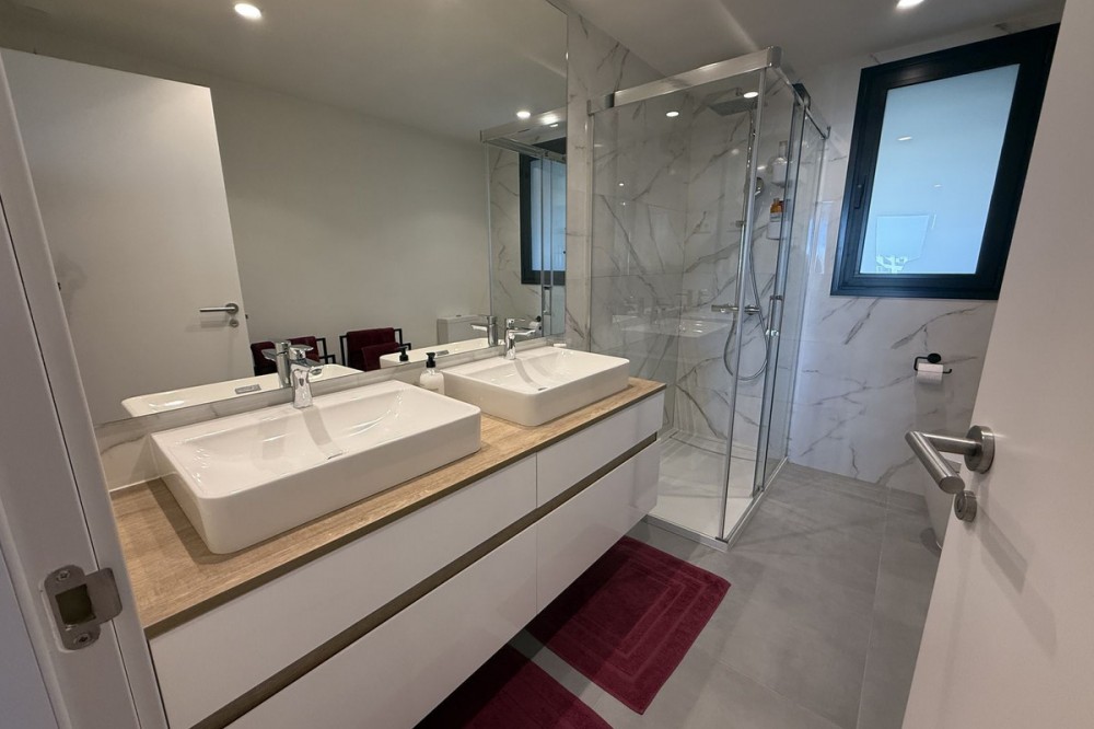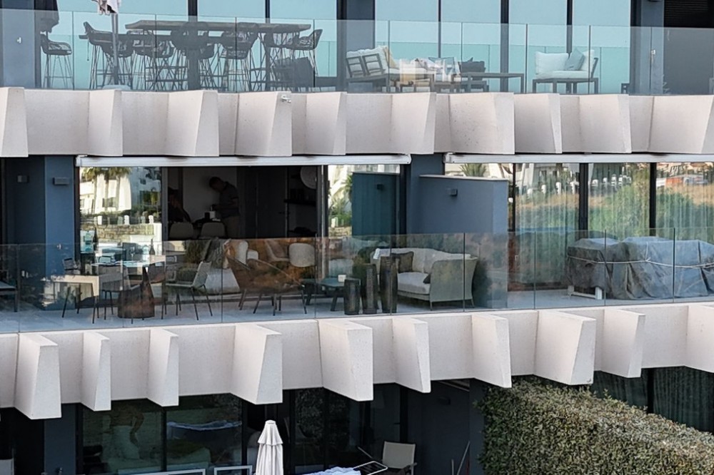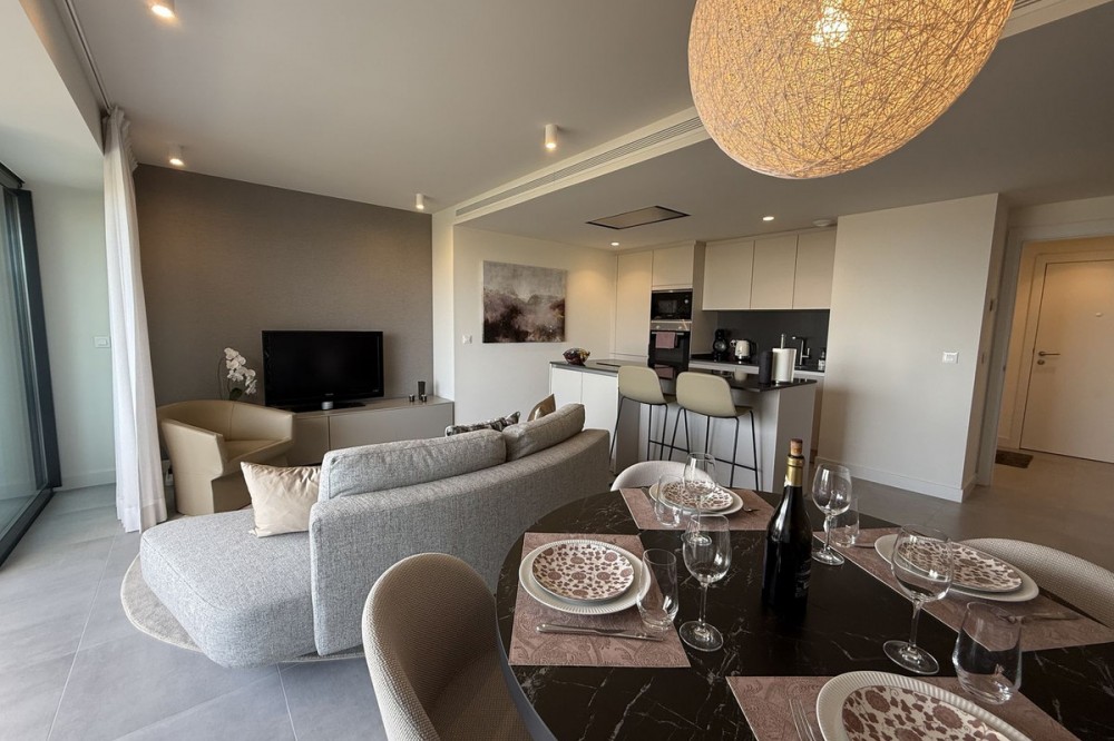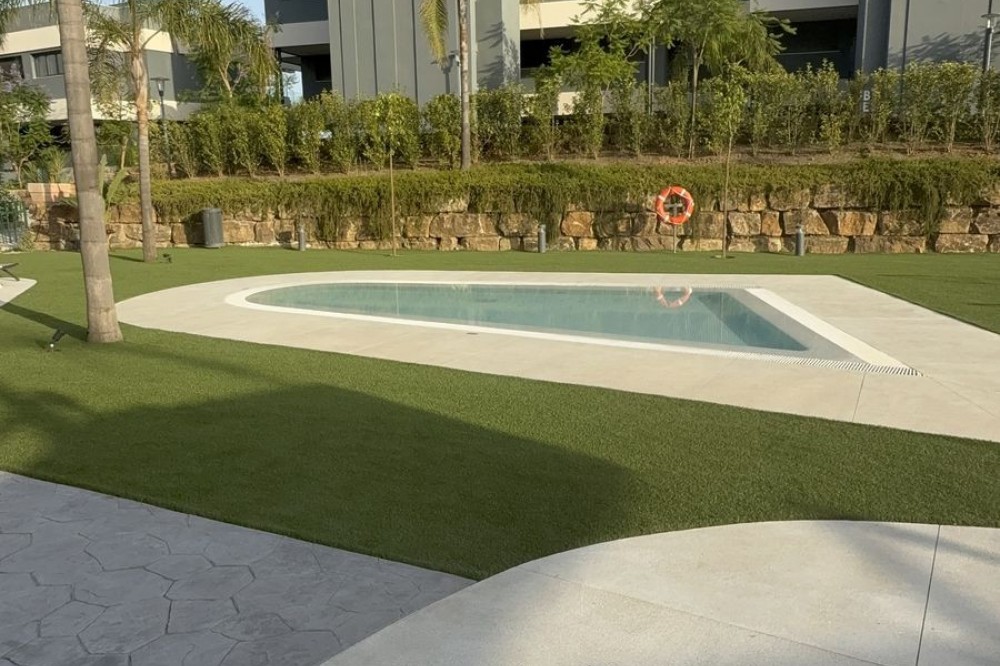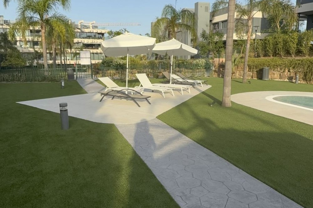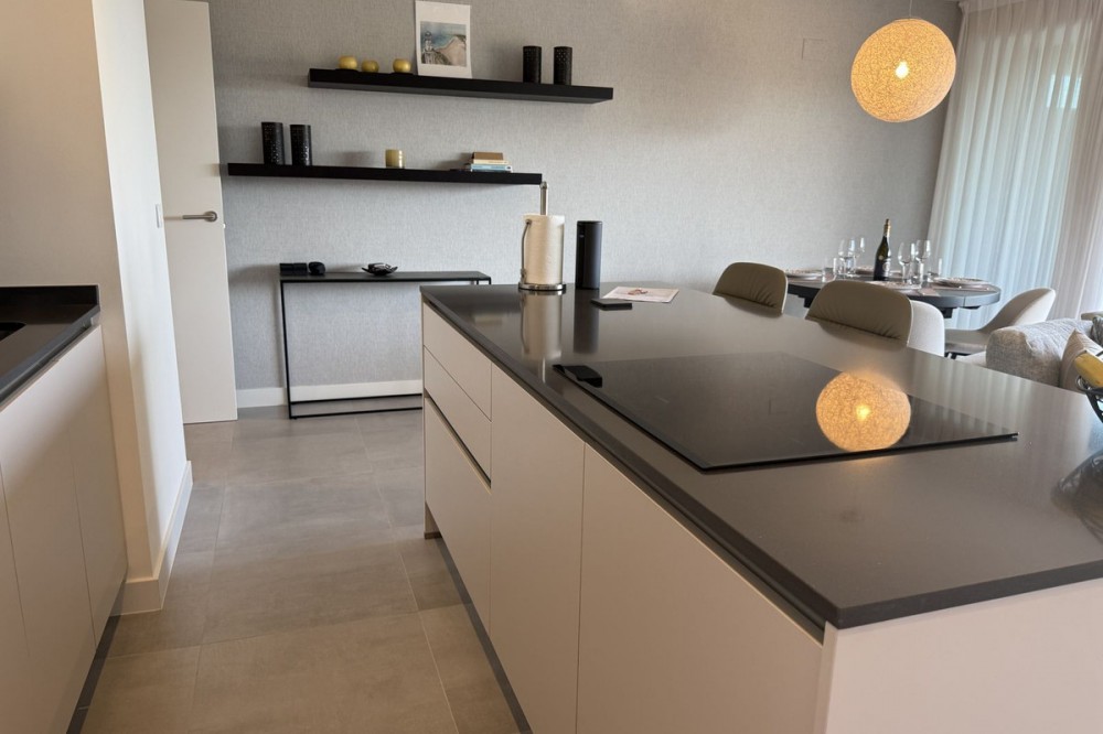- Elegant 2-Bedroom Apartment with Sea Views in Oasis 325 – Turn-Key with (optional) Designer Furnishings On the gentle hills that follow the Guadalmansa River on its way to the sea lies Oasis 325 – a privileged residential enclave ideally located between Estepona and Marbella. Its elevated position offers breathtaking views over the Mediterranean and surrounding natural areas, creating a serene, private atmosphere just minutes from the best of the Costa del Sol. This beautifully appointed 2-bedroom apartment is situated on one of the best spots within the development, offering uninterrupted sea views, lush green surroundings, and exceptional peace. Delivered in 2021–2022 and maintained in impeccable condition, the property is presented fully furnished with refined designer pieces and is ready to move into – a true turn-key residence. The interior living space of 102 m² flows naturally into a spacious 28 m² terrace that faces southwest, ensuring sun from late morning until sunset. The layout includes an open-plan living and dining area with large sliding doors that open directly onto the terrace. The fully equipped kitchen is centered around a sleek island with integrated induction hob, combining elegance and functionality in a space designed for both cooking and socialising. The master bedroom offers direct access to the terrace and enjoys spectacular views of the sea – a rare and privileged feature. The second bedroom is also generously sized, and both bathrooms are equipped with walk-in showers and finished in a modern, minimalist style. Throughout the apartment, high-quality materials, tasteful decoration, and abundant natural light create an atmosphere of calm and understated luxury. The terrace itself is ideal for year-round enjoyment, featuring a cosy side corner that captures the lower winter sun and a smart, automatically retractable sun awning that adjusts based on wind strength. Thanks to a large protected green zone in front of the building, the views will remain unobstructed indefinitely, offering permanent visual space, silence, and privacy. As a resident of Oasis 325, you’ll enjoy access to a wide range of first-class facilities designed to promote wellness and relaxation. These include an outdoor infinity pool with separate children’s section, both surrounded by soft-touch synthetic grass, and a heated indoor pool with a beautiful cascade fountain. The wellness area features a sauna and Turkish bath, and the fully equipped gym includes separate male and female changing rooms, each with showers and private lockers. A modern co-working lounge completes the offering, ideal for remote professionals or digital nomads. The apartment comes with one underground parking space and a spacious private storage room in the basement, with more than enough space for electric bikes and additional storage needs. Additional features include energy-efficient hot and cold air conditioning, solar-assisted aerothermal water heating, double-glazed windows, and high thermal insulation, contributing to the property’s excellent A/B energy rating. This property represents a rare opportunity to enjoy modern Mediterranean living at its finest – combining panoramic sea views, timeless design, and full peace of mind in one of the most desirable developments on the Costa del Sol. Design furniture is not included in this price but possible at additional cost (30K)