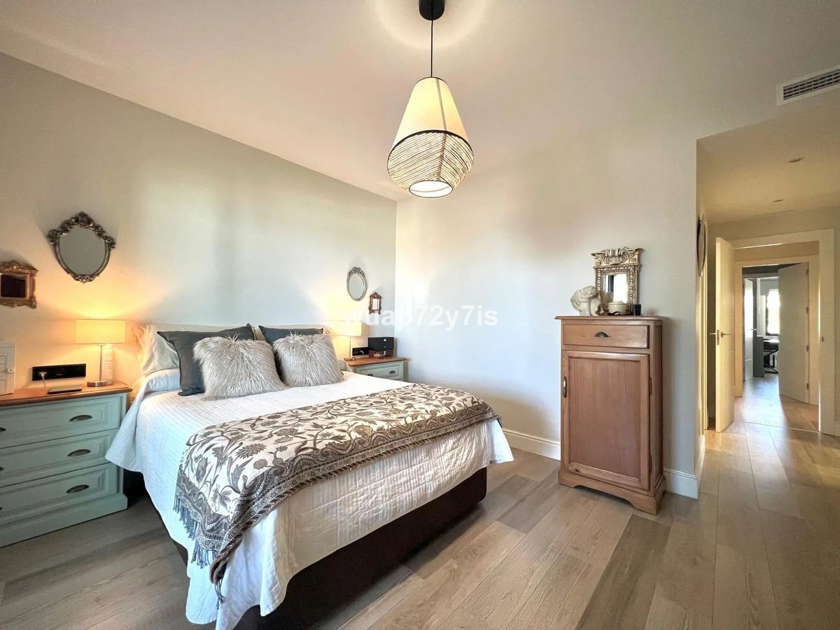 - An Exceptional Andalusian-Inspired Residence with Panoramic Mediterranean Views This apartment is located in incredible Mirador de Estepona Hill urbanisation, just 5 minutes from the center of Estepona, 10 minutes from the incredible beach and 23 minutes from the sunny Sant Pedro. This beautifully appointed apartment offers a spacious layout with three spacious bedrooms and two exquisite bathrooms, including a luxurious en-suite in the master bedroom. A thoughtful guest cloakroom with double vanities adds an extra layer of convenience and style. The spacious living area, originally 40 m², was partially reconfigured to create a custom dressing room, seamlessly integrated into the master bedroom for maximum comfort and privacy. The modern kitchen, equipped with the latest Neff appliances, boasts a minimalist aesthetic that combines clean lines with high-end functionality - perfect for both everyday living and entertaining. The crown jewel of the apartment is the stunning glazed terrace of almost 37 m², enclosed with frameless Lumon glass and fitted with discreet mosquito nets. From here you will enjoy spectacular panoramic views of the Mediterranean Sea. The property includes two private underground parking spaces and a secure storage unit. Every detail of this apartment has been carefully considered to the highest standards, including: • Cutting-edge Mitsubishi central air conditioning • Elegant Porcelanosa floors, bathrooms and sanitaryware • Contemporary fireplace • Premium Cortizo double glazing for thermal and acoustic insulation Located in a gated and secure complex with 24-hour surveillance, CCTV and concierge services, this prestigious development offers residents an unrivalled lifestyle. On-site amenities include: • Two gourmet restaurants • A welcoming community club • A fully equipped fitness centre • A professional tennis and paddle club • Lush, meticulously maintained tropical gardens Residents can also enjoy two infinity pools set against a stunning natural backdrop, offering the perfect haven of peace, privacy and prestige.