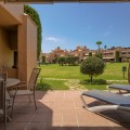 - Located within a very pleasant, secure residential community offering 24/7 security, this beautifully presented apartment combines comfort and resort-style amenities. Residents enjoy access to three swimming pools, tennis and paddle tennis courts, and beautifully maintained mature gardens. The apartment features two generously sized bedrooms, both with en-suite bathrooms and fitted wardrobes. The master bedroom opens onto a sunny, covered terrace that overlooks the communal gardens and pool—perfect for relaxing or entertaining. The second bedroom offers added charm with a Juliette terrace, allowing natural light and garden views to flood the space. Inside, the apartment is bright and inviting, with air conditioning throughout for year-round comfort. The spacious living area provides direct access to the terrace, garden, and pool area, enhancing the sense of indoor-outdoor living. An exterior awning offers shade on sunnier days, extending the use of the terrace. Additional features include communal parking, direct access to recreational facilities, and a sun-drenched layout that makes this apartment a true gem in one of the area’s most sought-after communities.