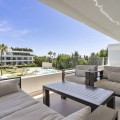 - Modern apartment located in an excellent spot on the New Golden Mile, just few steps from all the services. With modern amenities, stylish finishes, and plenty of space, this apartment is perfect for families. Key Features: - 3 Spacious Bedrooms: Perfect for families or those needing extra space. The master bedroom features an ensuite bathroom, while the other two bedrooms are generously sized with plenty of closet space. - Bright & Airy Living Room: The open-plan living and dining area boasts large windows, allowing natural light to flood the space. The living room leads out to a private terrace, ideal for relaxing or dining al fresco. - Fully Equipped Kitchen: Modern kitchen with high-end appliances, plenty of storage, and a separate utility room. Ready for all your culinary needs. - 2 Modern Bathrooms: Both bathrooms are sleek and contemporary, with high-quality fixtures and fittings. The master bedroom features an ensuite with a shower, while the second bathroom has a bathtub and shower combination. - Private Terrace: Enjoy outdoor living with a spacious private terrace, ideal for dining, lounging, or enjoying the pleasant weather. - Air Conditioning & Heating: Stay comfortable year-round with climate control throughout the apartment. - Secure Parking: The apartment comes with an allocated parking space within the gated complex. - Communal Pool & Gardens: The complex offers well-maintained communal gardens and a large swimming pool for residents to enjoy. - Storage Room: Additional space for storing bikes, seasonal items, or personal belongings. Location: Located in the desirable area of Belaire, just a short drive from the charming village of Cancelada and the popular town of Estepona. Walking distance to amenities: Supermarkets, cafes, restaurants, and local shops are all just a short stroll away. Minutes from the beach: Enjoy easy access to beautiful beaches and the stunning coastline of the Costa del Sol. Transport links: Excellent access to the AP-7 motorway for easy travel to Marbella, Puerto Banús, and beyond. The area is well-served by public transport.
