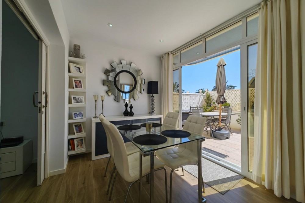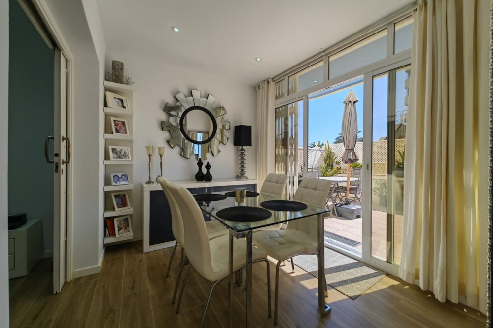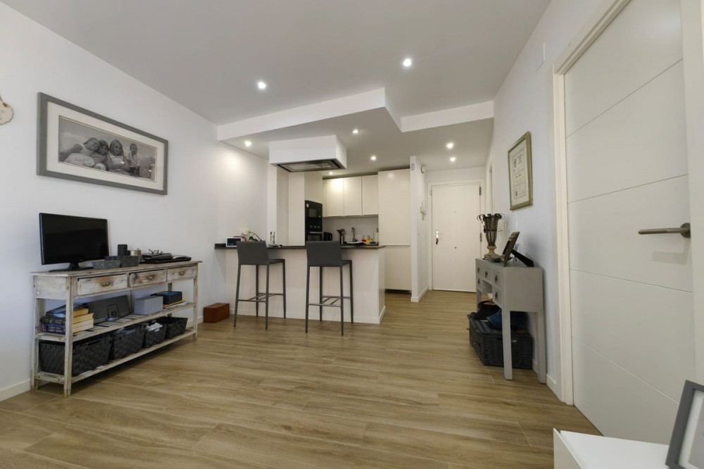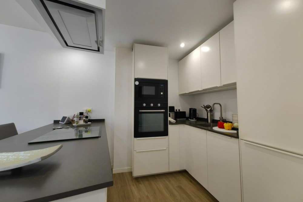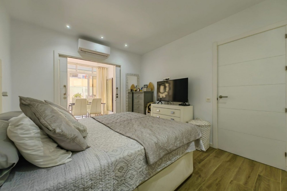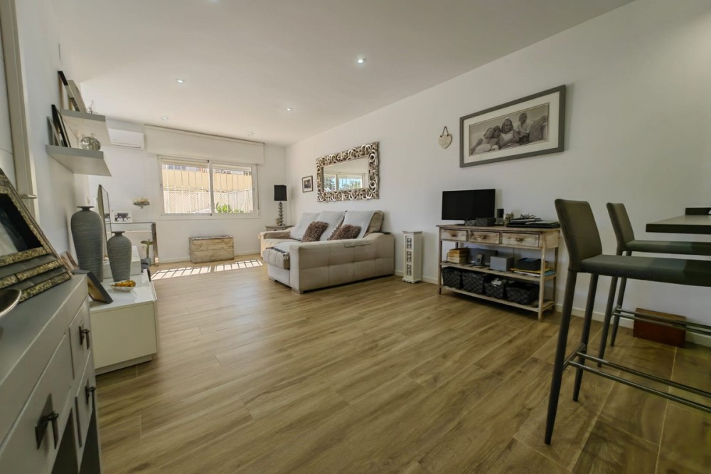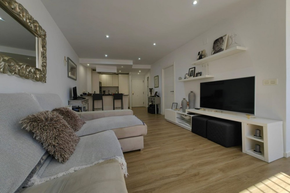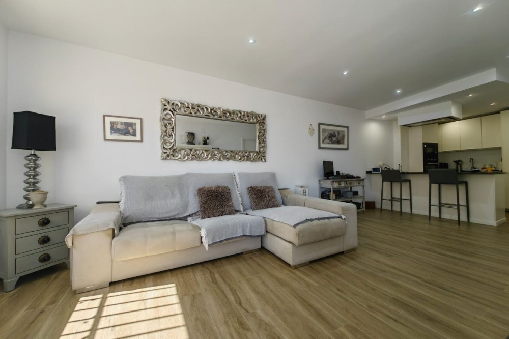 - Ground Floor Apartment with Large Terrace in Puerto Paraíso, Estepona Discover this beautifully reformed 1-bedroom ground floor apartment in the highly sought-after Puerto Paraíso urbanisation, located in the very heart of the Port and Marina of Estepona. This is a rare opportunity to own a frontline marina apartment with easy access for everyone, including those requiring wheelchair access. The apartment features a stylish open-plan kitchen with a breakfast counter, flowing seamlessly into the bright lounge and dining area. From here, large glass doors open onto an impressive 45 m² private terrace, perfect for outdoor living, with a lounge area, sunbeds, and views of the surrounding greenery. The bedroom is complemented by a modern bathroom with a walk-in shower with glass sliding doors and a wall-mounted toilet. Every detail has been carefully renovated to the highest contemporary standards, including a fully fitted kitchen with quality appliances. Additional features include: Hot and cold air-conditioning Private storeroom Free community parking within the gated complex With its unbeatable location, modern finishes, and expansive outdoor space, this is an ideal turnkey home to enjoy all that Estepona has to offer—just steps away from the marina, restaurants, and the beach