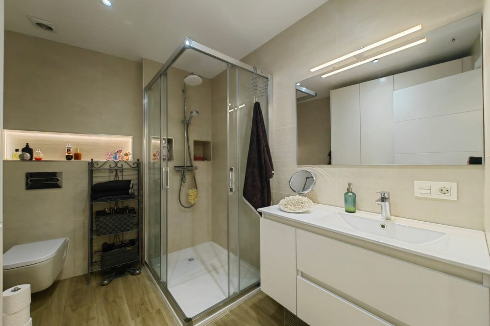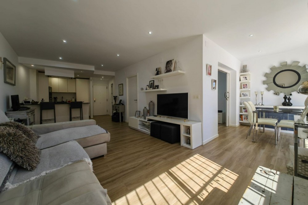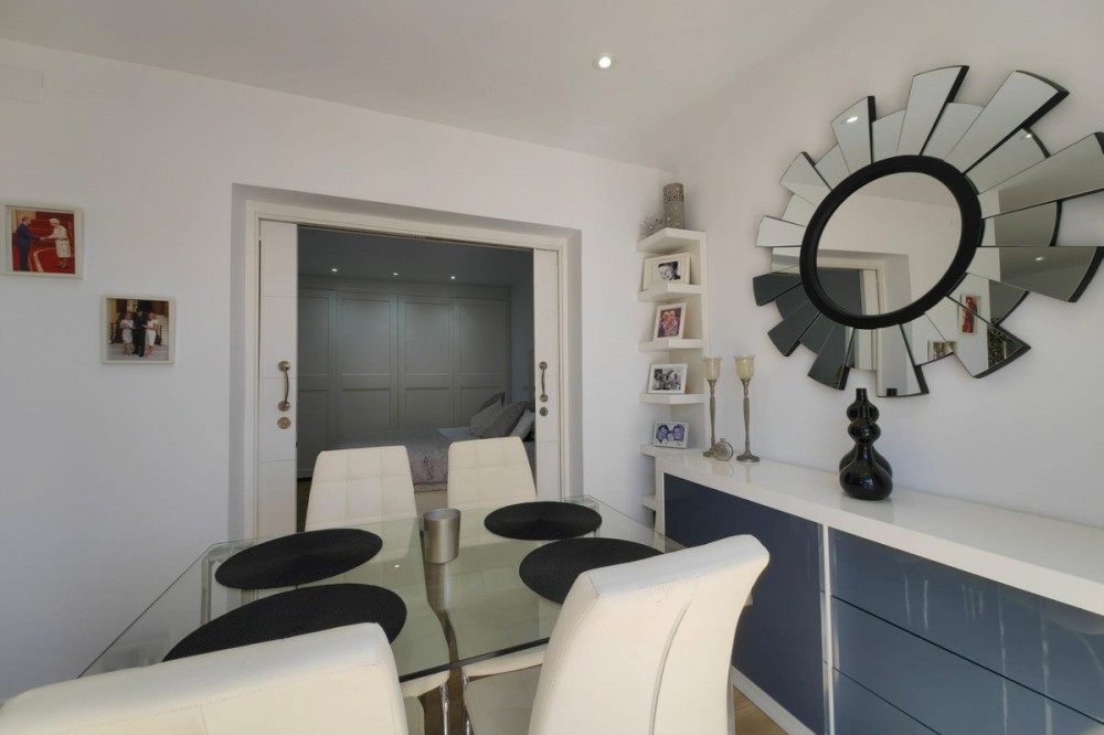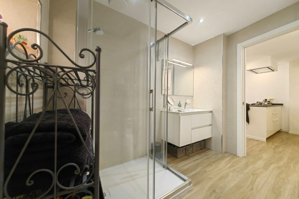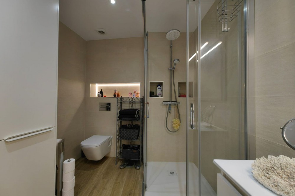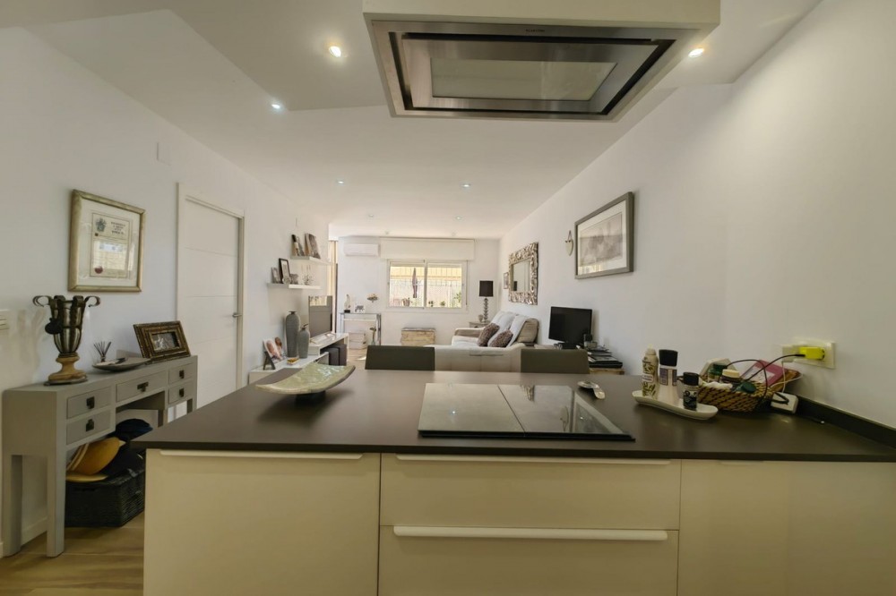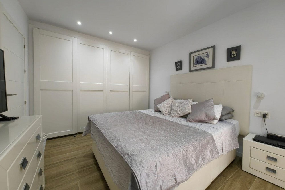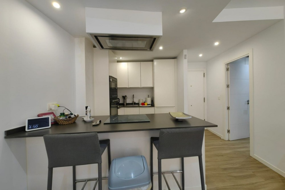 - Ground Floor Apartment with Large Terrace in Puerto Paraíso, Estepona Discover this beautifully reformed 1-bedroom ground floor apartment in the highly sought-after Puerto Paraíso urbanisation, located in the very heart of the Port and Marina of Estepona. This is a rare opportunity to own a frontline marina apartment with easy access for everyone, including those requiring wheelchair access. The apartment features a stylish open-plan kitchen with a breakfast counter, flowing seamlessly into the bright lounge and dining area. From here, large glass doors open onto an impressive 45 m² private terrace, perfect for outdoor living, with a lounge area, sunbeds, and views of the surrounding greenery. The bedroom is complemented by a modern bathroom with a walk-in shower with glass sliding doors and a wall-mounted toilet. Every detail has been carefully renovated to the highest contemporary standards, including a fully fitted kitchen with quality appliances. Additional features include: Hot and cold air-conditioning Private storeroom Free community parking within the gated complex With its unbeatable location, modern finishes, and expansive outdoor space, this is an ideal turnkey home to enjoy all that Estepona has to offer—just steps away from the marina, restaurants, and the beach