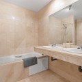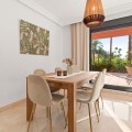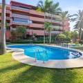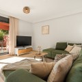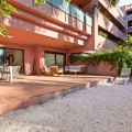 - Ground Floor Apartment for Sale in the New Golden Mile Discover the perfect coastal retreat in this spacious ground floor apartment located on the sought-after New Golden Mile, just a stone's throw from the beach(100 meters). With a generous total area of 163 m², this property features two well-appointed double bedrooms and two large bathrooms, making it ideal for families or those seeking extra space. The exquisite living and dining room opens to two semi-covered terraces, perfect for enjoying the Mediterranean climate. Step outside to your private garden, complete with a staircase leading to lush communal tropical gardens. Enjoy the luxury of outdoor saltwater swimming pools and a range of complex amenities, including a gym, sauna, jacuzzi, and a large heated indoor pool. The apartment also includes a spacious kitchen, laundry room, and ample storage in the basement, along with a private garage space for your convenience. With a fantastic orientation to the east, this apartment is bathed in natural light throughout the day. Additional features include electric central heating, air conditioning, and built-in wardrobes. Located in a well-maintained urbanization with plenty of parking spaces outside, this property is a perfect blend of comfort and luxurity.