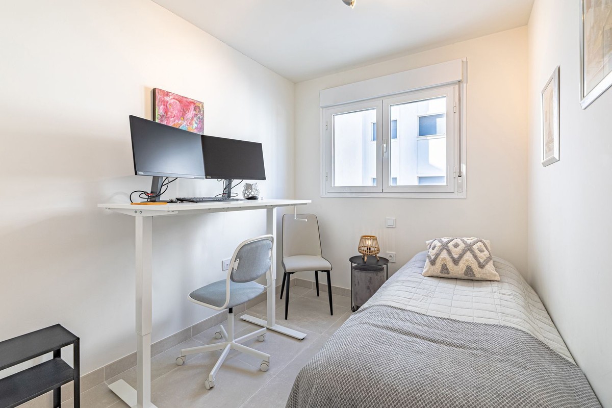 - Welcome to this modern home in Estepona with stunning sea views and a pool. The property features three bedrooms, two bathrooms, a balcony, a terrace, and a garage space, offering both comfort and practicality. Located on the 4th floor of 5, you can enjoy the views from the enclosed balcony. The home also has a tourist license, making it ideal as a permanent residence or a rental investment. The area offers a wide range of restaurants, shops, and pleasant walking paths, and the beach is just 330 meters away – a short walk to enjoy sun and sea. This is the perfect home for those looking to combine sea views, a pool, city life, and comfortable living with parking in Estepona. Don’t hesitate to contact us for a viewing!