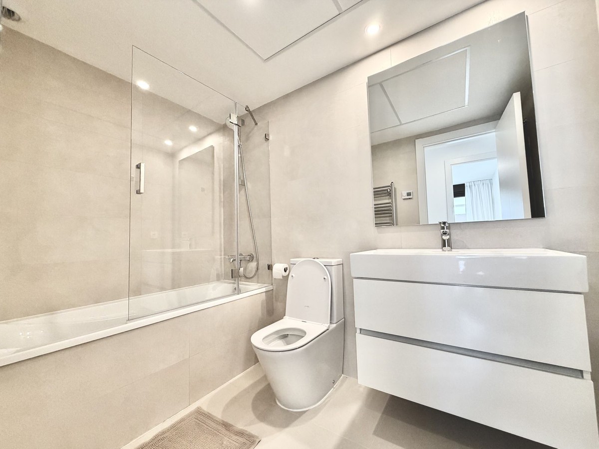 - This stylish 2-bedroom, 2-bathroom ground-floor apartment is located within the exclusive South Place development in Estepona. The open-plan living area with a modern kitchen opens onto a spacious private terrace — perfect for enjoying the Mediterranean lifestyle. Upgraded beyond the developer’s standard specifications, the apartment includes several premium features: kitchen island; all built-in appliances by Siemens; washer-dryer; additional fitted wardrobes; underfloor heating in bathrooms; bathtub in one bathroom (instead of two showers); heated towel rails. Ideally situated in a peaceful residential area with excellent access to all amenities: 10 minutes’ walk to Estepona Marina, 10 minutes’ walk to the beach, 5 minutes’ drive to the town centre. Residents can enjoy beautifully designed communal areas with adult and children’s pools, a gym, and landscaped gardens. A perfect blend of comfort, design, and location — just a short walk from the sea.