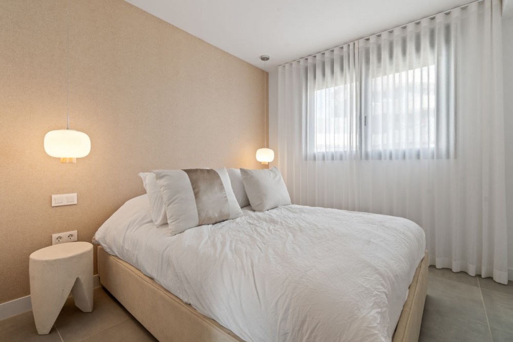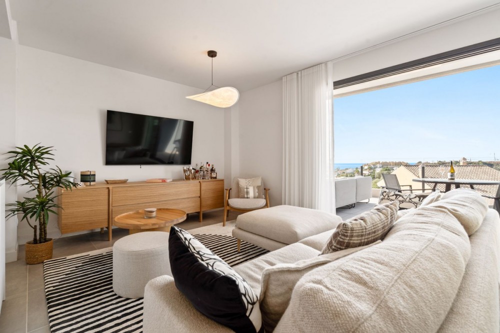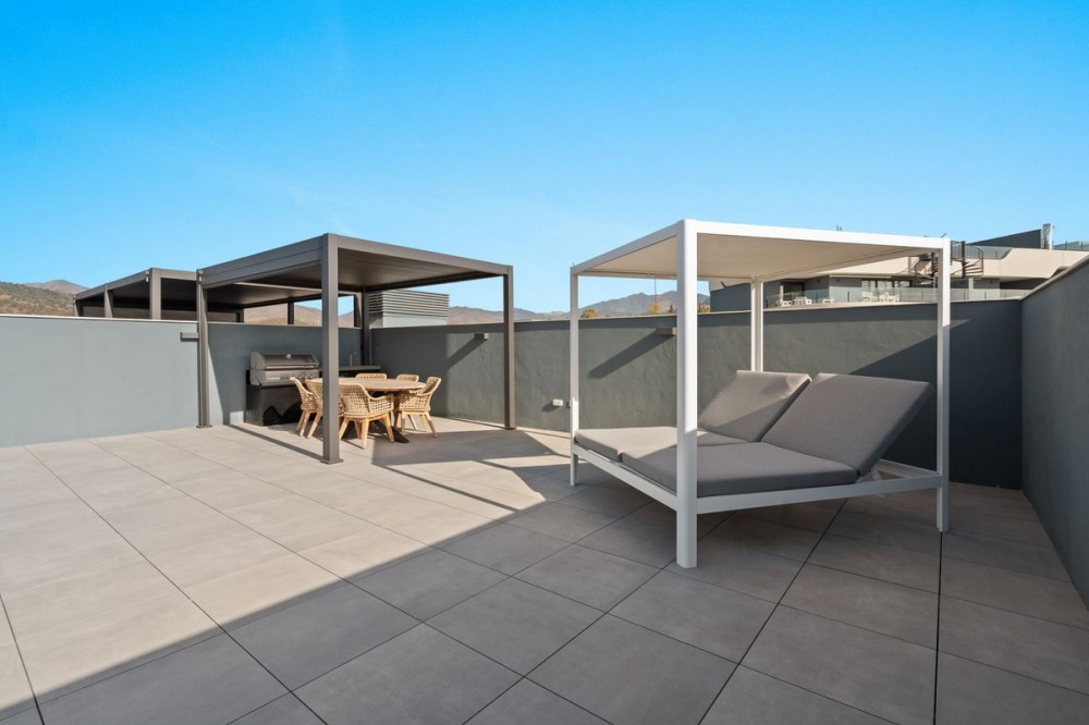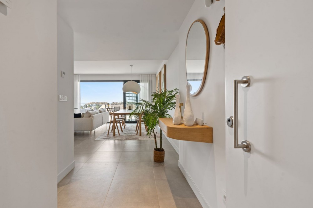 - An exclusive penthouse located in the prestigious residential complex Oasis 325 Phase 2 in Estepona (Málaga). This development is renowned for its modern architecture, peaceful surroundings, and high-quality facilities. This penthouse combines elegant design, maximum comfort, and breathtaking views of the Mediterranean Sea, the surrounding mountains, and the natural park Selwo Aventura. Layout and finishes: The apartment offers three bedrooms with built-in wardrobes and two stylish bathrooms – one with a bathtub and one with a shower. The open-plan kitchen is fully fitted with integrated appliances and connects seamlessly to the bright living and dining area, where large sliding doors lead to the spacious terrace. Thanks to its large windows, the entire property enjoys abundant natural light and panoramic views. Finishes are of the highest standard, featuring a luxurious interior, quality materials, and great attention to detail. The penthouse also includes a washing machine and tumble dryer, as well as central air conditioning. Outdoor area: The generous terrace offers full privacy and stunning views of the sea, the mountains, and the lush Selwo park — the perfect place to relax and enjoy the sun and scenery throughout the day and at sunset. Extras: The property comes with two underground parking spaces and a large private storage room, providing valuable extra space within this exclusive complex. Complex facilities: Heated indoor swimming pool Fully equipped gym Wellness area with sauna and Turkish bath Modern coworking space Landscaped gardens and outdoor pool.