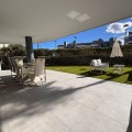 - Modern Mediterranean corner ground-floor apartment located between Estepona and Puerto Banús, offering a unique opportunity to enjoy an exclusive lifestyle in the sought-after area of La Resina. Featuring three bedrooms and two bathrooms, this property stands out for its contemporary design and seamless connection between indoor and outdoor spaces. Its south-facing orientation ensures natural light throughout the day, while the spacious private garden with pool views creates an ideal setting for relaxation or social gatherings in total privacy The open-concept living room, dining area and kitchen flow effortlessly onto the terrace and garden, creating a bright, spacious and welcoming environment. The kitchen is equipped , extended cabinetry and a separate laundry area. The master bedroom includes a charming enclosed terrace that provides an additional sunlit and serene space. All bedrooms feature built-in wardrobes and electric shutters, while the overall finishes reflect a high standard of quality, comfort and style The residential complex offers a range of exclusive amenities designed to enhance the comfort and well-being of its residents, including a heated indoor pool, fully equipped gym, spa with sauna and steam room, and an elegant clubhouse for private events and social gatherings. The landscaped gardens surround a large outdoor swimming pool. In 2025, an exclusive paddle club with eleven courts, wellness area and restaurant will open, further increasing the appeal of this premium community The location is exceptional, with easy access to both Estepona and Puerto Banús and surrounded by top-tier services including the Atlas American School of Málaga with over 700 students, the recently expanded private hospital Hospiten, supermarkets such as Mercadona, Aldi, Lidl and Carrefour, and a diverse culinary offering including trendy beach clubs like Bossa and Sonora. The property includes one underground parking space and a storage room, with the option to purchase a second parking space if desired. The apartment is in excellent condition, ready to move into.