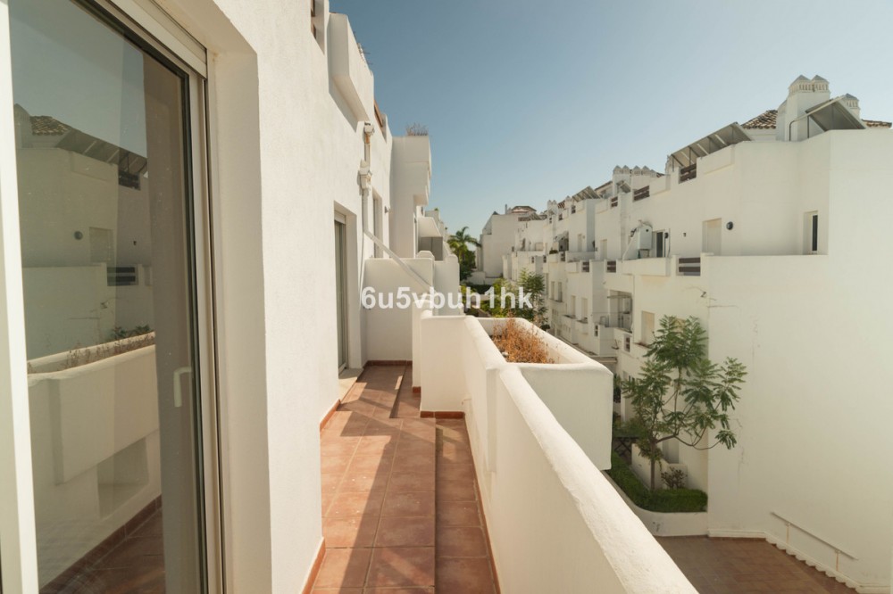 - This beautiful first-floor apartment is located in the exclusive Valle Romano residential area, one of the most sought-after and fast-developing neighborhoods in Estepona. The property features bright, spacious interiors with a large living-dining area that opens onto two private terraces, perfect for enjoying the sunshine and the pleasant Mediterranean climate all year round. The independent kitchen is fully equipped and designed for both functionality and style — ideal for daily living or for those who enjoy cooking and entertaining. The apartment offers three generous bedrooms, including a master bedroom with an en-suite bathroom, plus a second full bathroom, both finished with high-quality materials and modern design. Additional features include: - Hot and cold air conditioning - Electric shutters and fitted wardrobes - Furniture included in the price Set within a secure gated community with 24-hour security, the complex provides a calm and well-maintained environment with: - A large communal swimming pool surrounded by landscaped gardens - Green areas for relaxation - On-site maintenance service The current community fee is €170/month due to a temporary renovation assessment. Once completed (the works in this block are already finished), the monthly fee will be reduced to €90–100/month. Located in a quiet and private area, the apartment is just 5 minutes by car from Estepona town center and within walking distance to restaurants, supermarkets, and local amenities. An ideal choice as a permanent home, holiday retreat, or investment property, thanks to its excellent value, rental potential, and the continuous growth of the area. An exceptional opportunity to enjoy Mediterranean lifestyle, comfort, and tranquility — just minutes away from the sea in one of Estepona’s most promising locations.