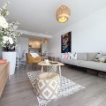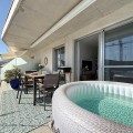 - This beautiful three-bedroom, two-bathroom apartment benefits from a southwest orientation, ensuring lovely afternoon light and pleasant sunsets. From the terrace, you can enjoy open views of the surrounding nature, with a partial sea view to the left. The terrace also features a private jacuzzi, perfect for unwinding at the end of the day. The interior has been designed in a modern Mediterranean style with high-quality materials. The open-plan kitchen, fully equipped (refrigerator, oven, ceramic hob, etc.), opens onto a welcoming living area that extends seamlessly to the outside. An underground parking space and a storage room are included. The residence offers perfectly maintained gardens and a large swimming pool. It also enjoys an ideal location: the beach is within walking distance (around 15 minutes), and the ports of Estepona and La Duquesa are just a few minutes away by car.