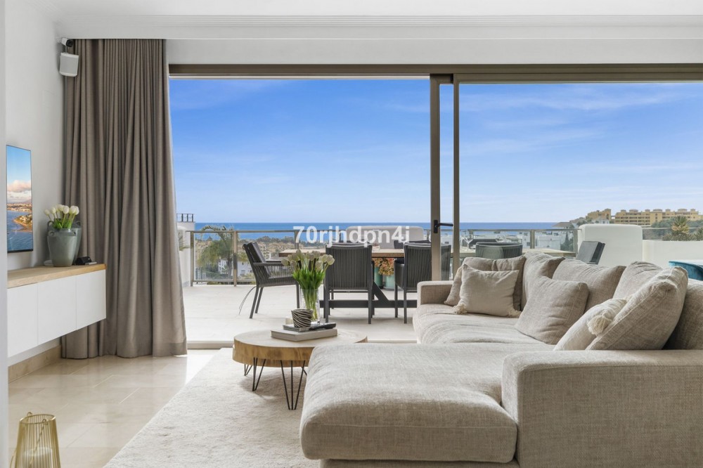 - Discover this fully renovated penthouse in the heart of La Resina Golf – one of the most sought-after locations on the New Golden Mile between Marbella and Estepona. Priced at €750,000, this turnkey property comes fully furnished, blending modern luxury with Mediterranean elegance. The penthouse offers three spacious bedrooms, two stylish bathrooms, an open-plan living area filled with natural light, and a large terrace overlooking the golf course and the sea. A perfect blend of peace, comfort, and sophistication – ready to move in.