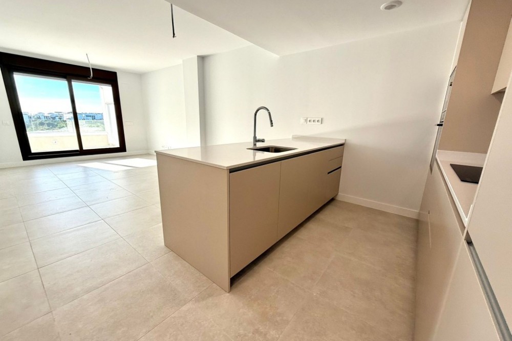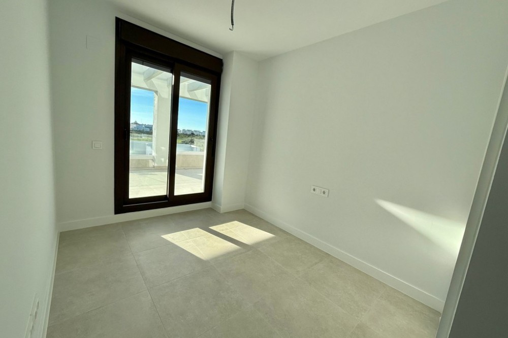 - Beautiful brand new modern middle floor apartment with 2 bedrooms and 2 bathrooms with a large terrace with spectacular open views. Located in West Estepona surrounded by array of restaurants, cafees, two supermarkets and amenities, only 5min drive to Estepona town. Set within a secure gated community with large pool and kid's pool, gym, and a large co-working area. Built to a high standard with open plan kitchen and living, dining area leading to a large terrace. Both bedrooms, one of them en-suite has access to a terrace. Hot and cold air-conditioning throughout. Undeground parking and storage room included in the price. Wonderful opportunity for permanent living, holiday use or investment for rentals. Community allows a short term rentals.